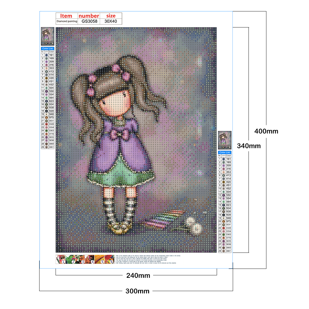 There are different sizes of diamond painting Kits. The bigger the size of a canvas, the better the effect you will get at the end. Smaller canvas can give a “Lego brick” effect, while bigger canvas give a more realistic piece of art.