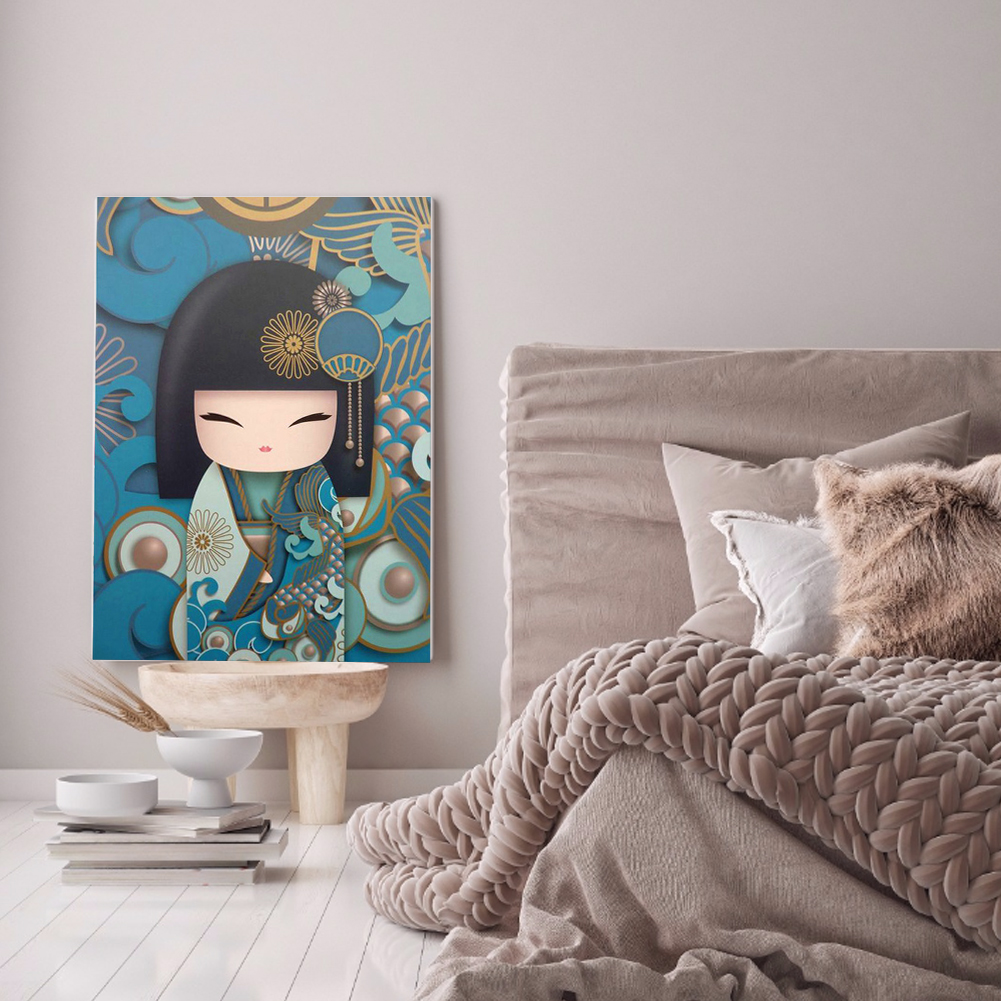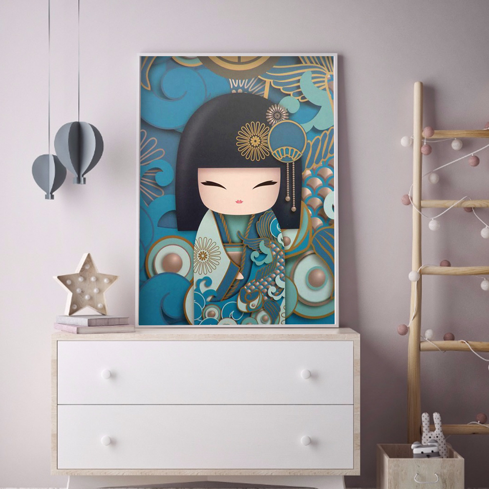 12x16 inch 5D DIY Full Round Drill Diamond Painting Kokeshi Doll Mosaic Wall Art Picture of Rhinestone Kit Home Decoration
