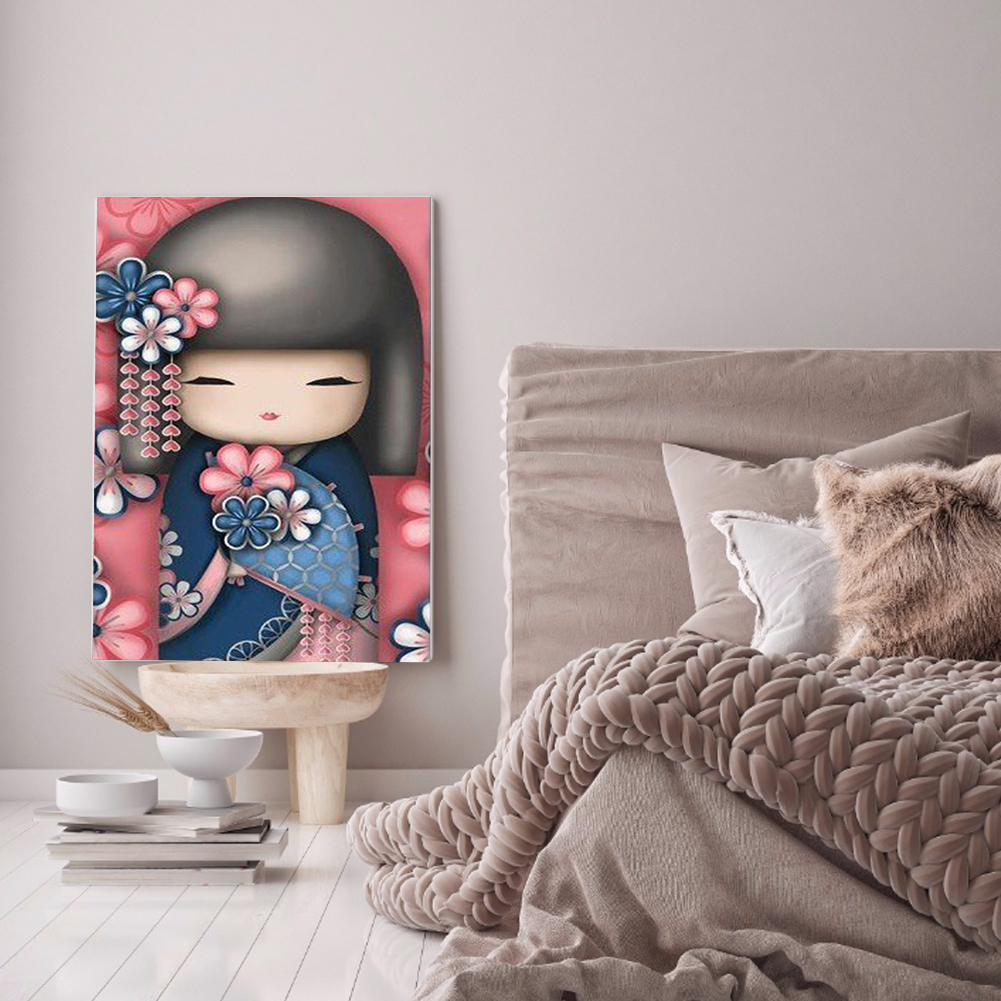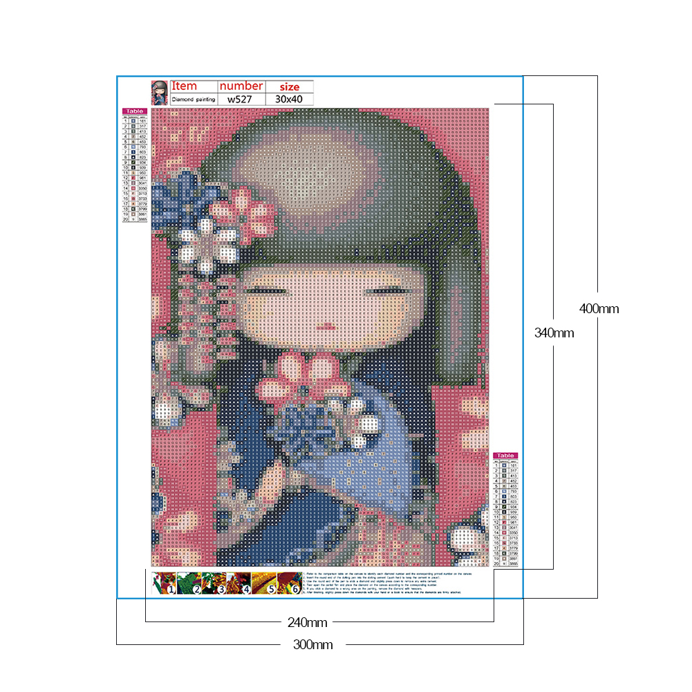 12x16 inch 5D DIY Full Round Drill Diamond Painting Kokeshi Doll Mosaic Wall Art Picture of Rhinestone Kit Home Decoration