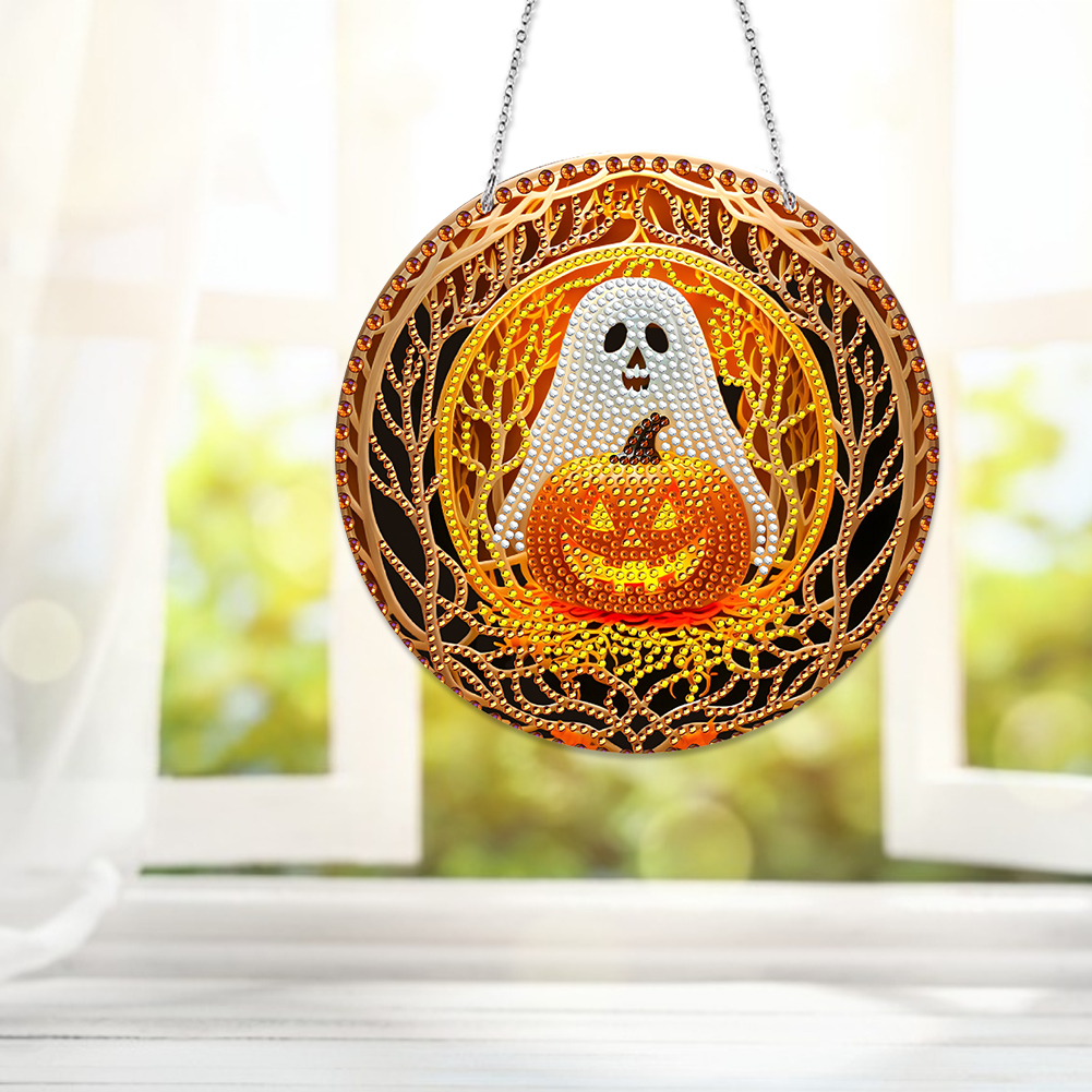 DIY Pumpkin Crystal Diamond Pendant Single-sided 5D Round for Home Garden