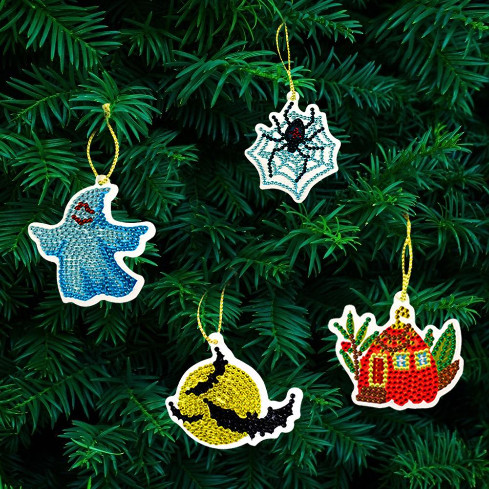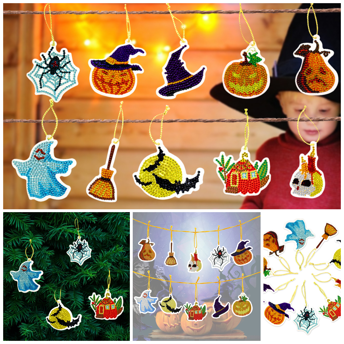 10pcs DIY Diamond Painting Halloween Pendant Full Drill Special Shaped Rhinestone Diamond Pumpkin Spider Ghost Mosaic Ornament for Gifts