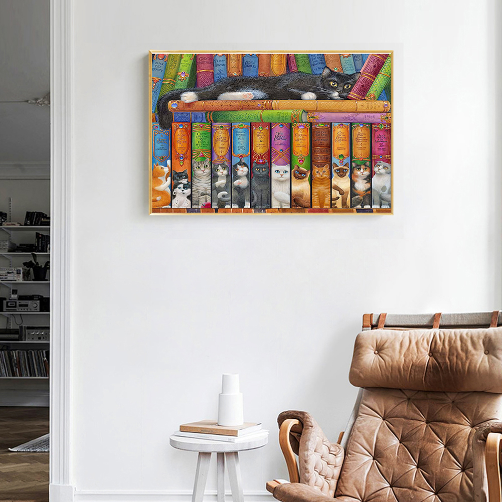 Full Cross Stitch Embroidery Cotton Thread Painting Cat And Book Pattern DIY Needlework Kits 11CT Stamped Print Canvas Artworks Home Wall Art Gifts Decoration Craft