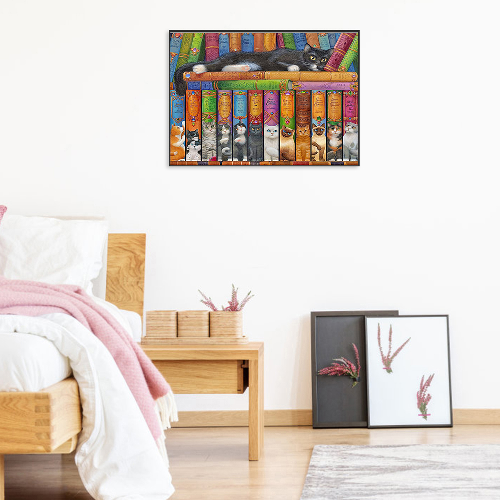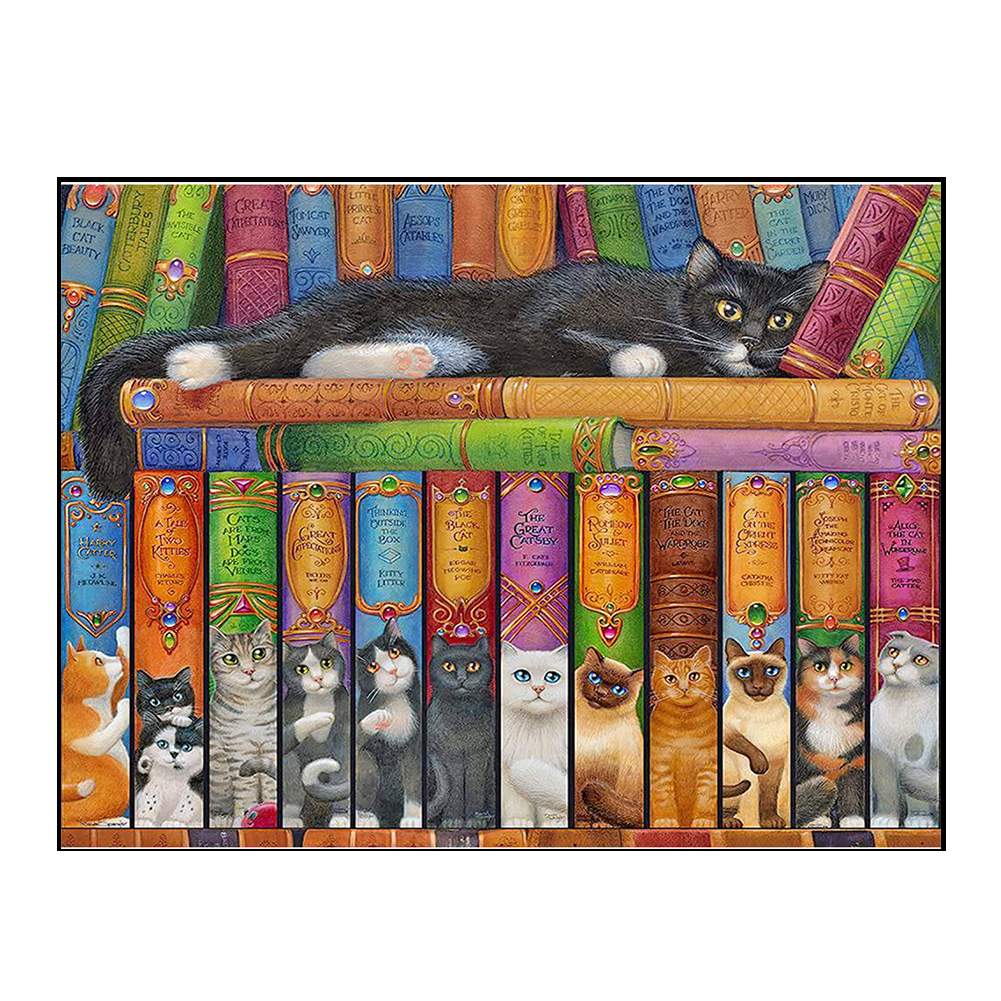 14CT Full Stamped Cross Stitch - Cat And Book(Canvas|40*50CM)