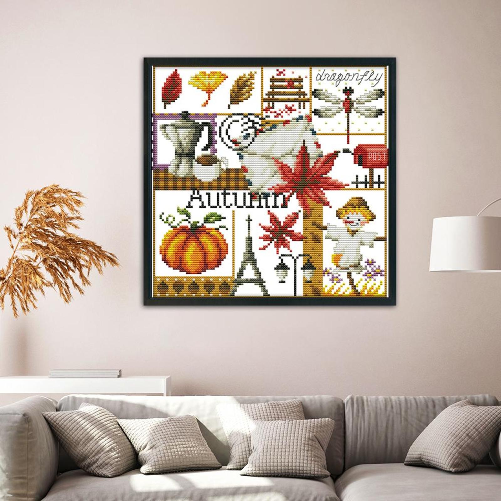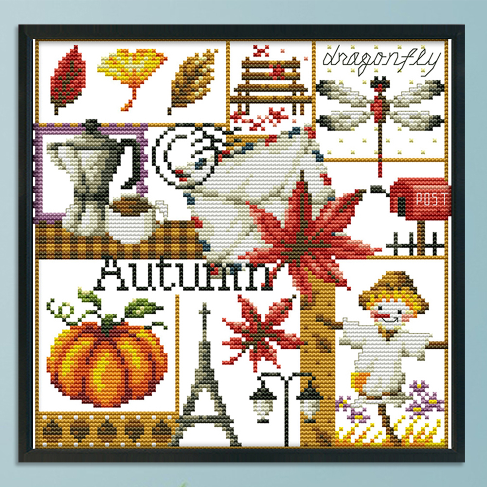 14CT Stamped Cross Stitch Kits DIY Printed Needlework Decor (K942 Autumn)