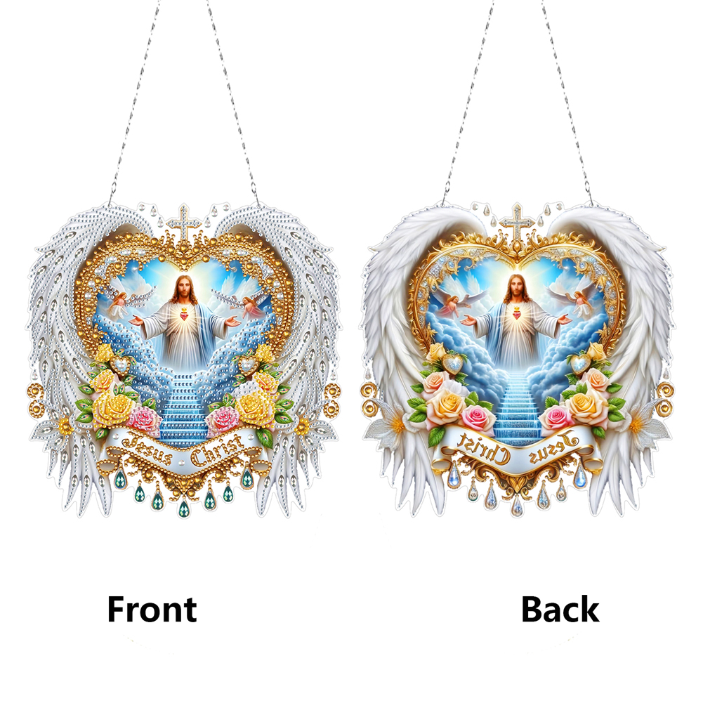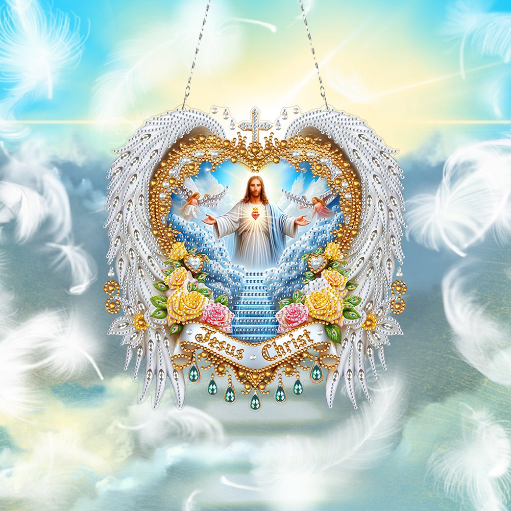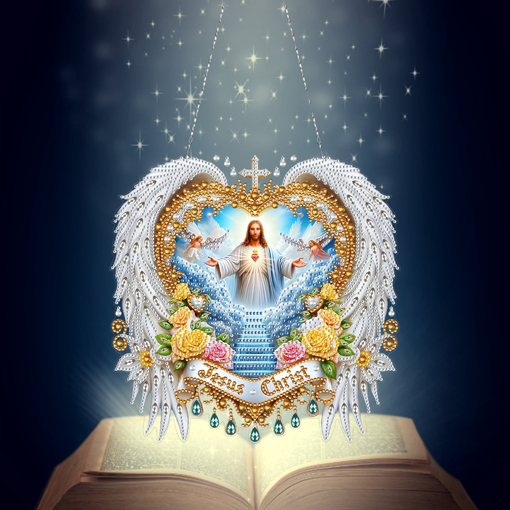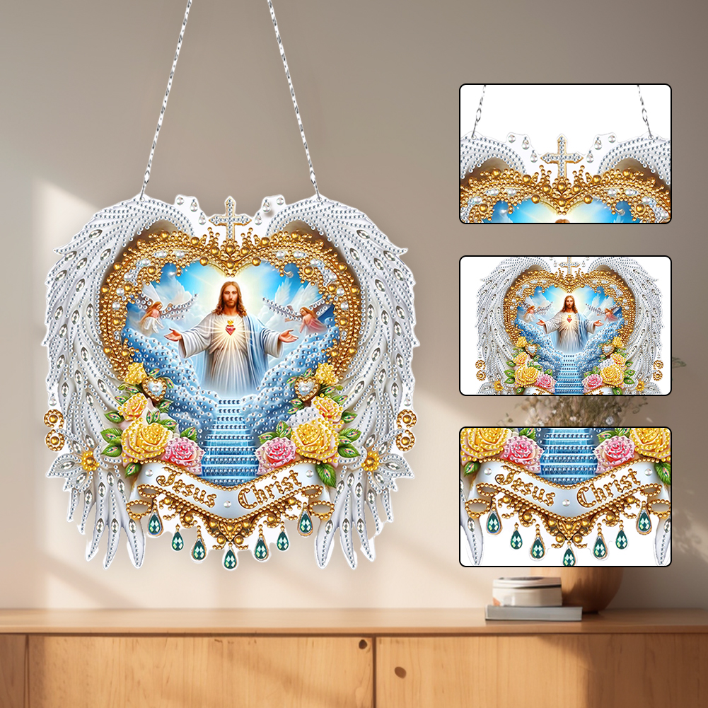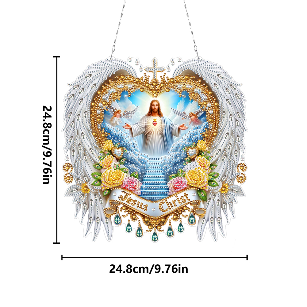 Jesus Praying 5D DIY Diamond Painting Dots Pendant Rhinestone Diamond Art Pendants Diamond Painting Hanging Pendant for Art Crafts