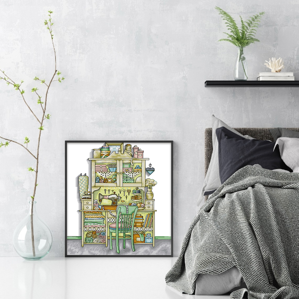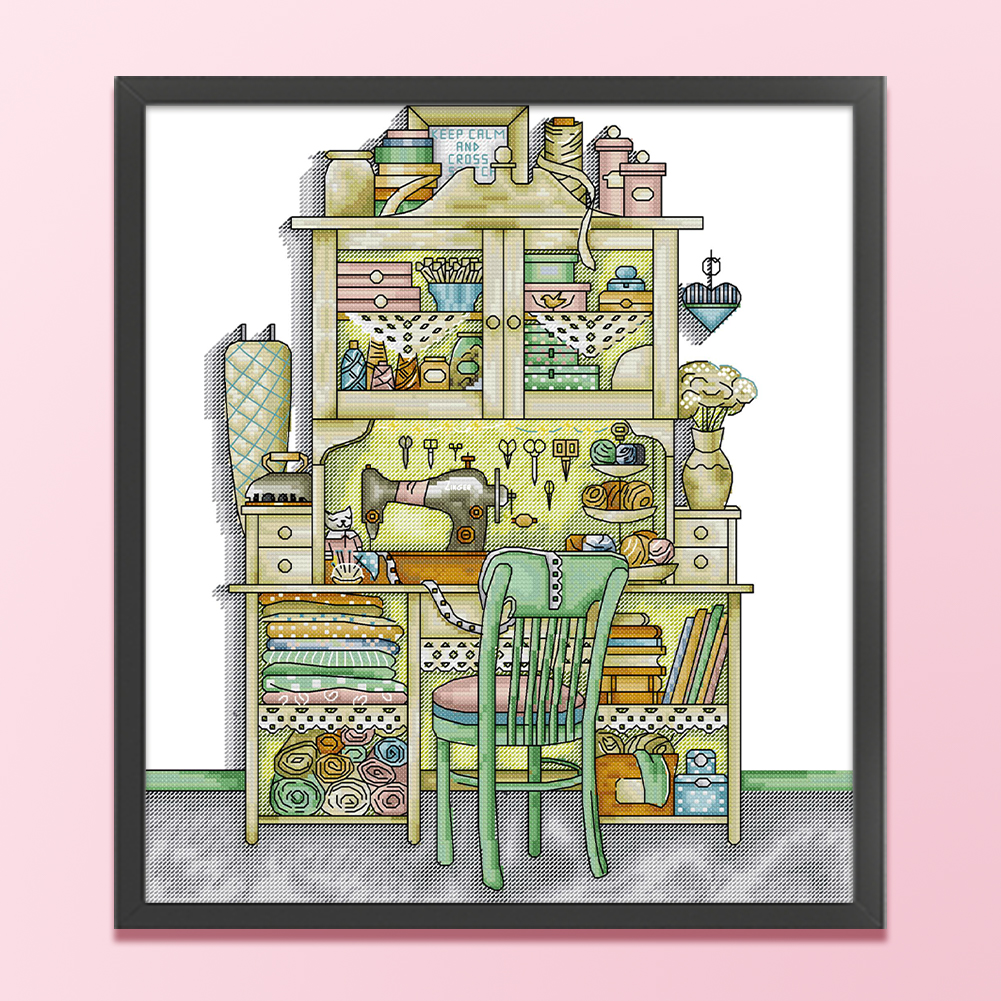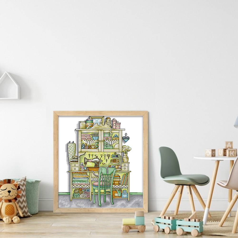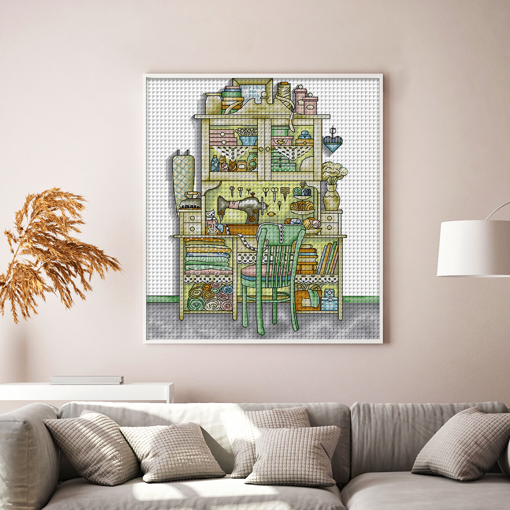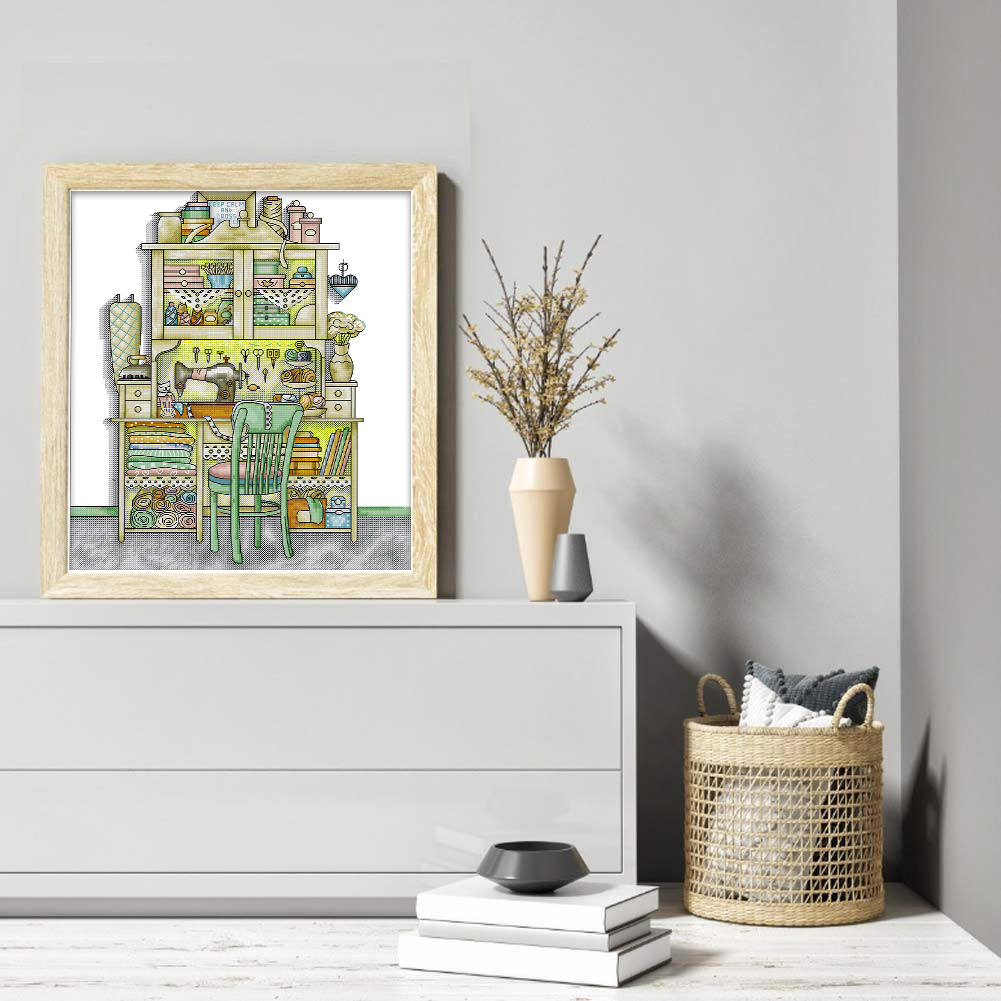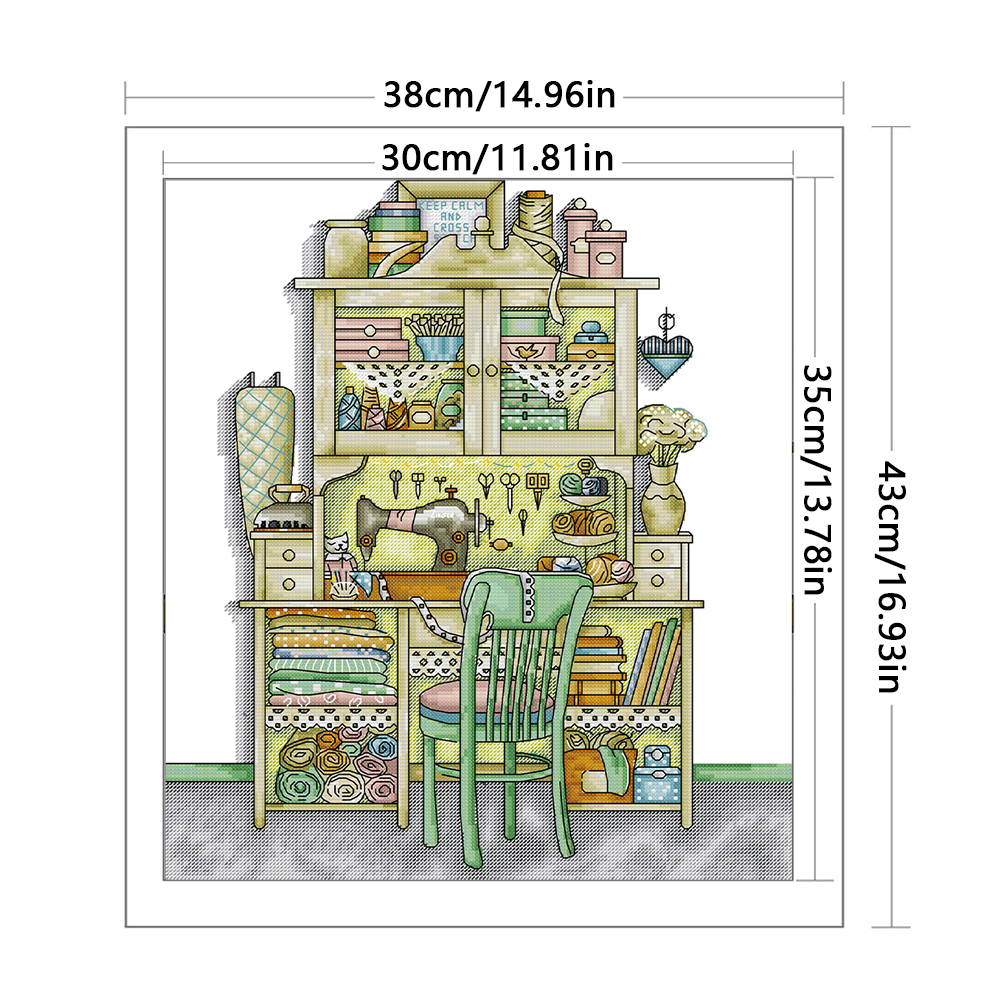 Embroidery Cotton Thread 14CT Print Handmade Sewing Cabinet Cross Stitch 38x43cm
