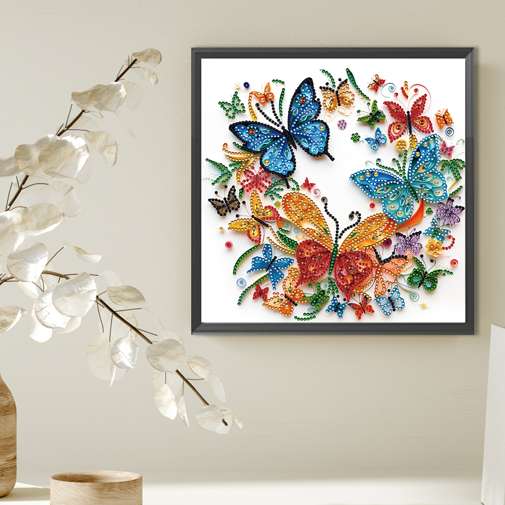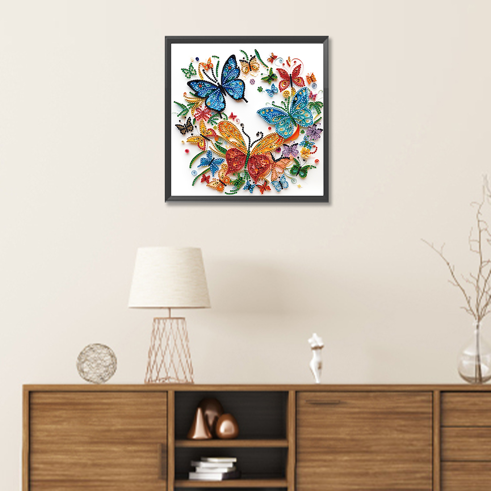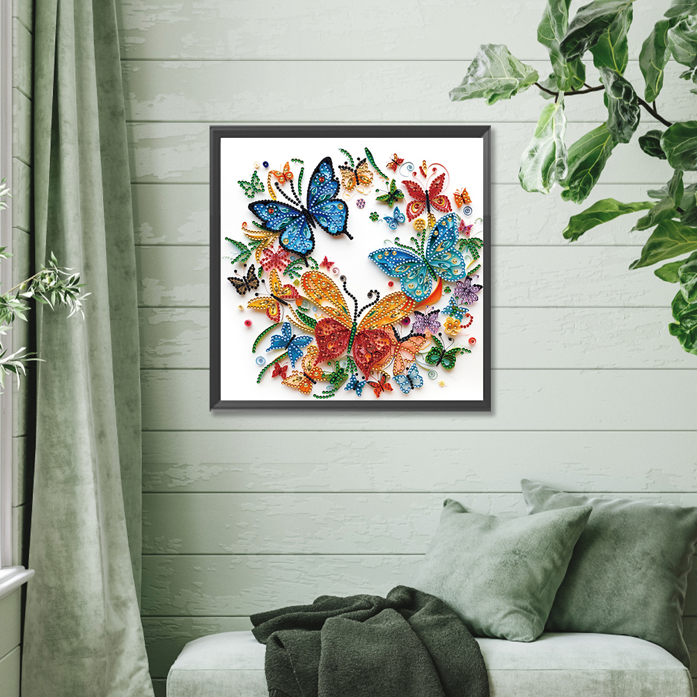 Diamond Painting - Partial Special Shaped Drill - Flower Butterfly(Canvas|30*30cm)