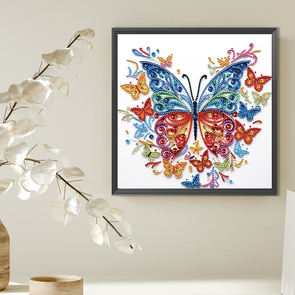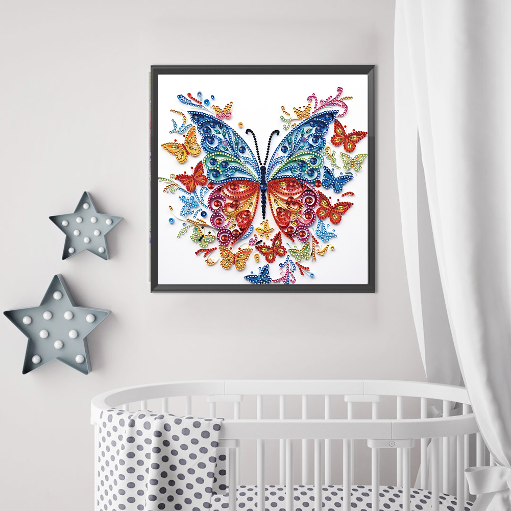 Diamond Painting - Partial Special Shaped Drill - Flower Butterfly(Canvas|30*30cm)
