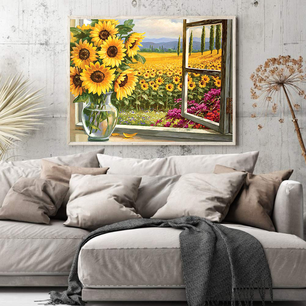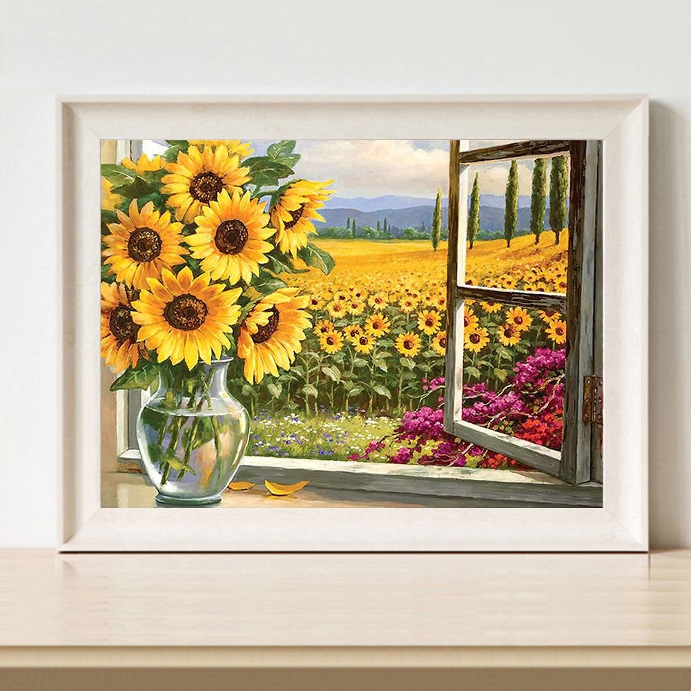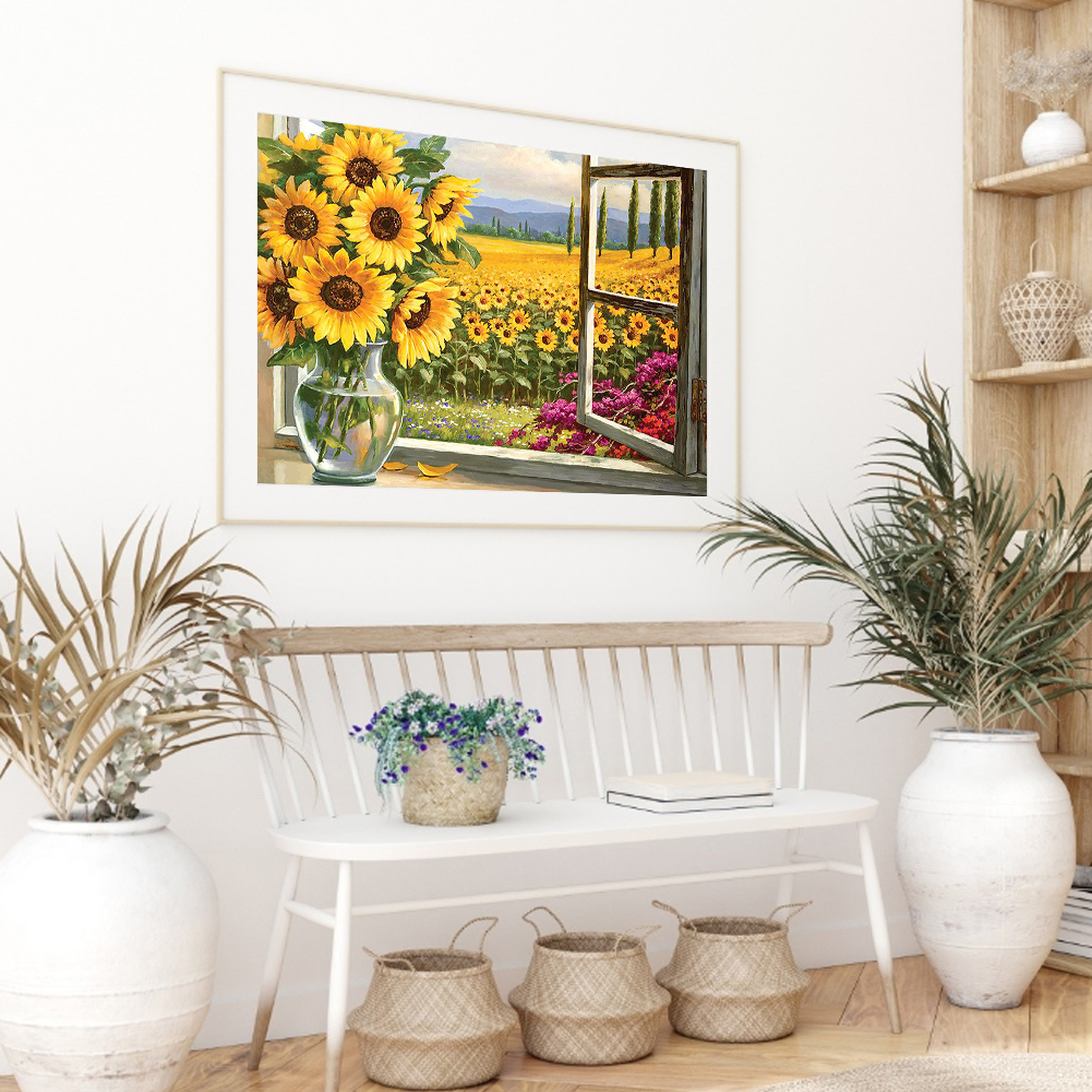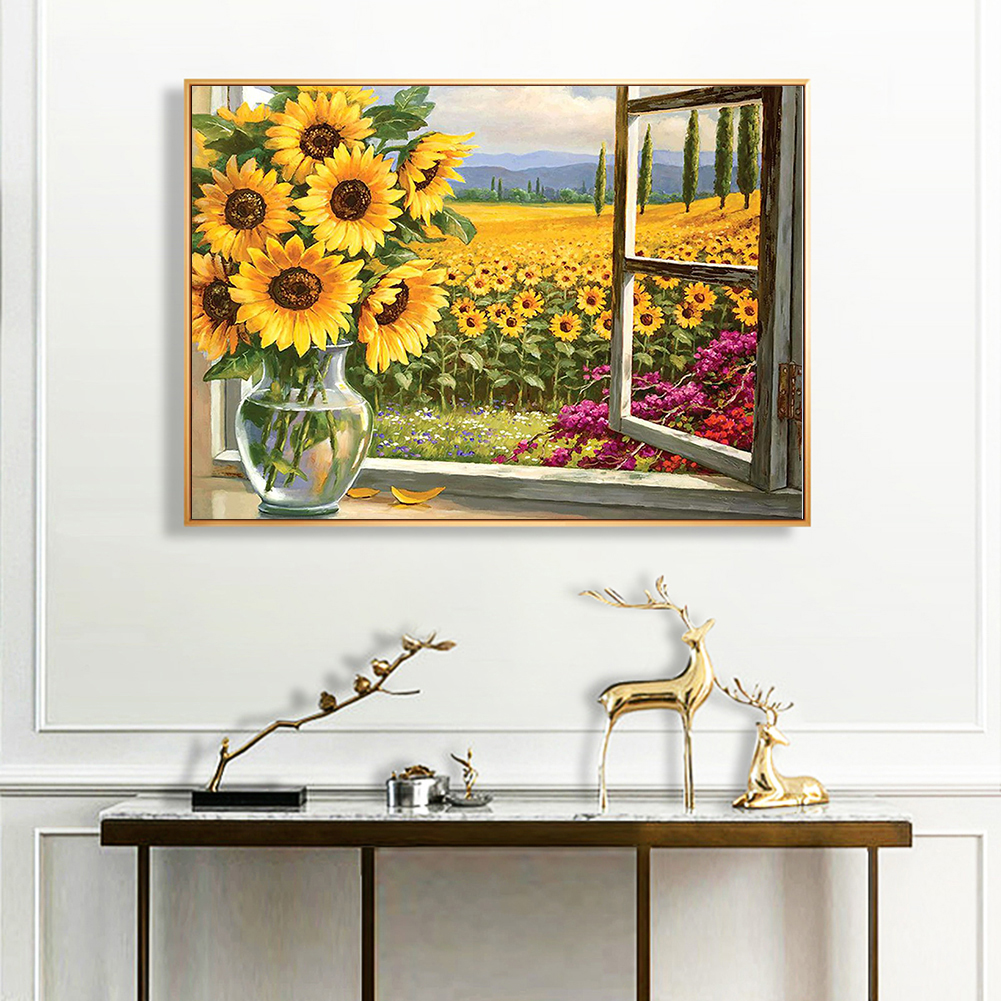 DIY Full Cross Stitch Embroidery Sunflower Cotton Thread Handcraft Painting 11CT Stamped Printed Needlework Home Wall Decoration Ornament