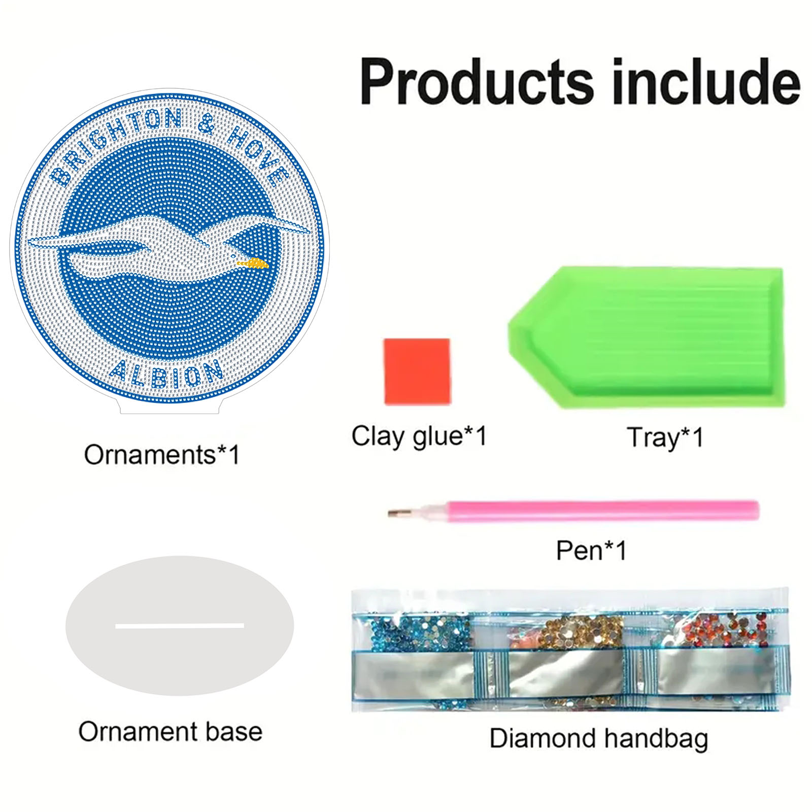 5D DIY Brighton & Hove Albion F.C. Acrylic Special Shape Diamond Painting Desktop Ornaments Stand Up 5D Gem Painting Crafts for Home Office Table Top Decor