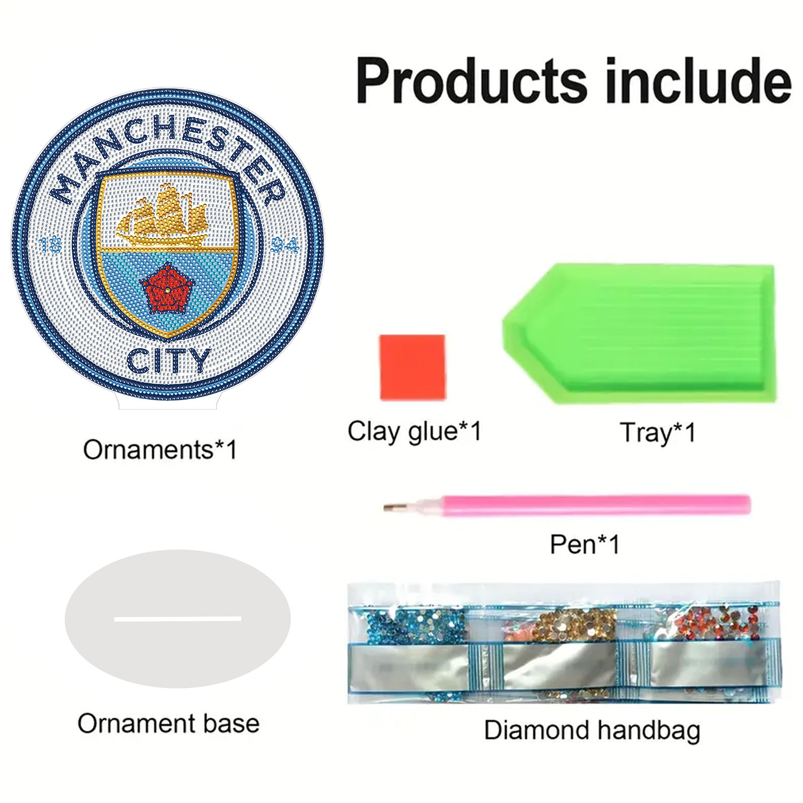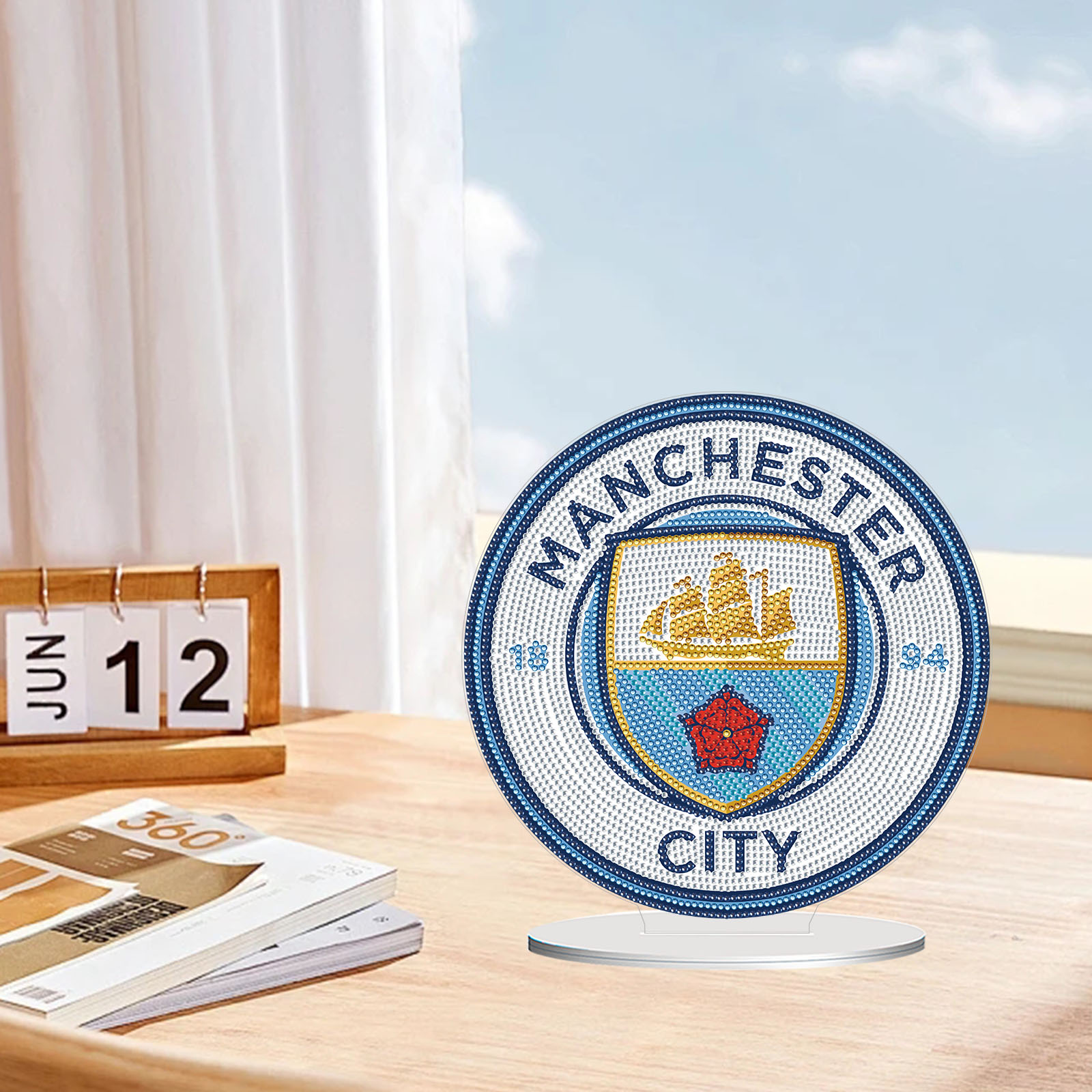 5D DIY Manchester City FC Acrylic Special Shape Diamond Painting Desktop Ornaments Stand Up 5D Gem Painting Crafts for Home Office Table Top Decor