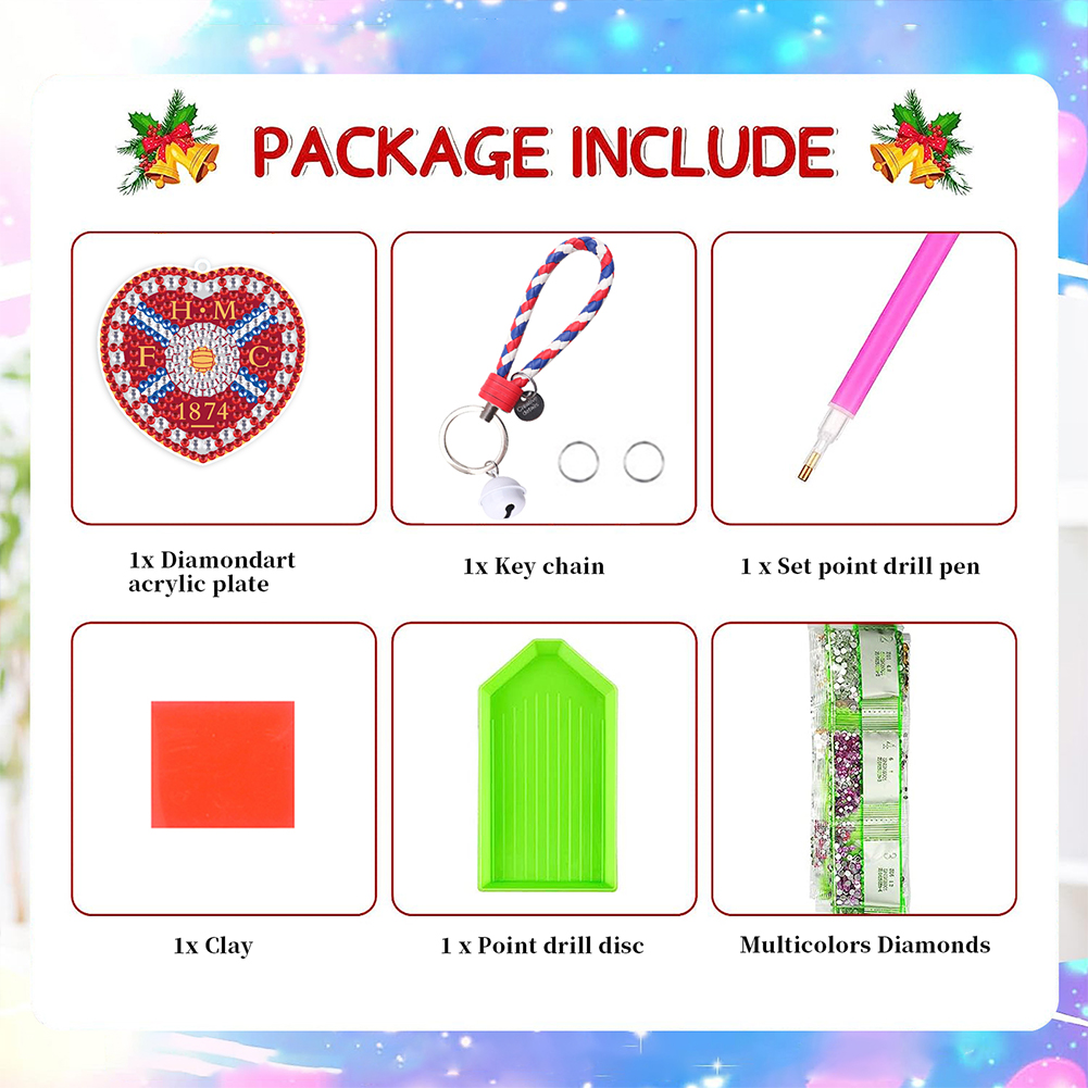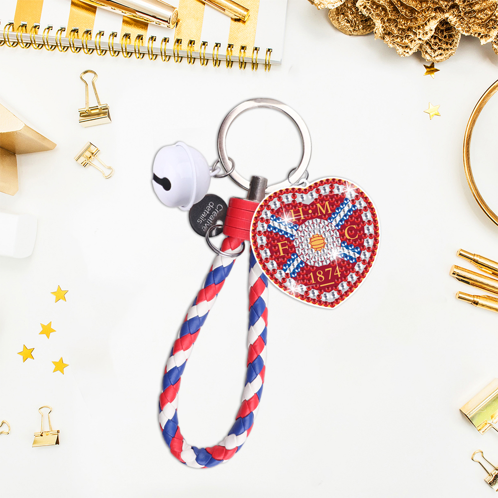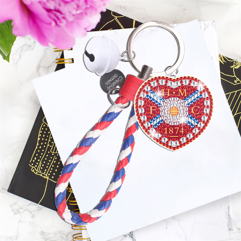 【Upgrade】DIY Heart of Midlothian F.C. Logo Double Sided Rhinestone Painting Keychain Pendant for Adult