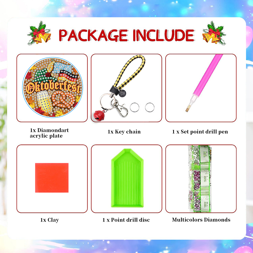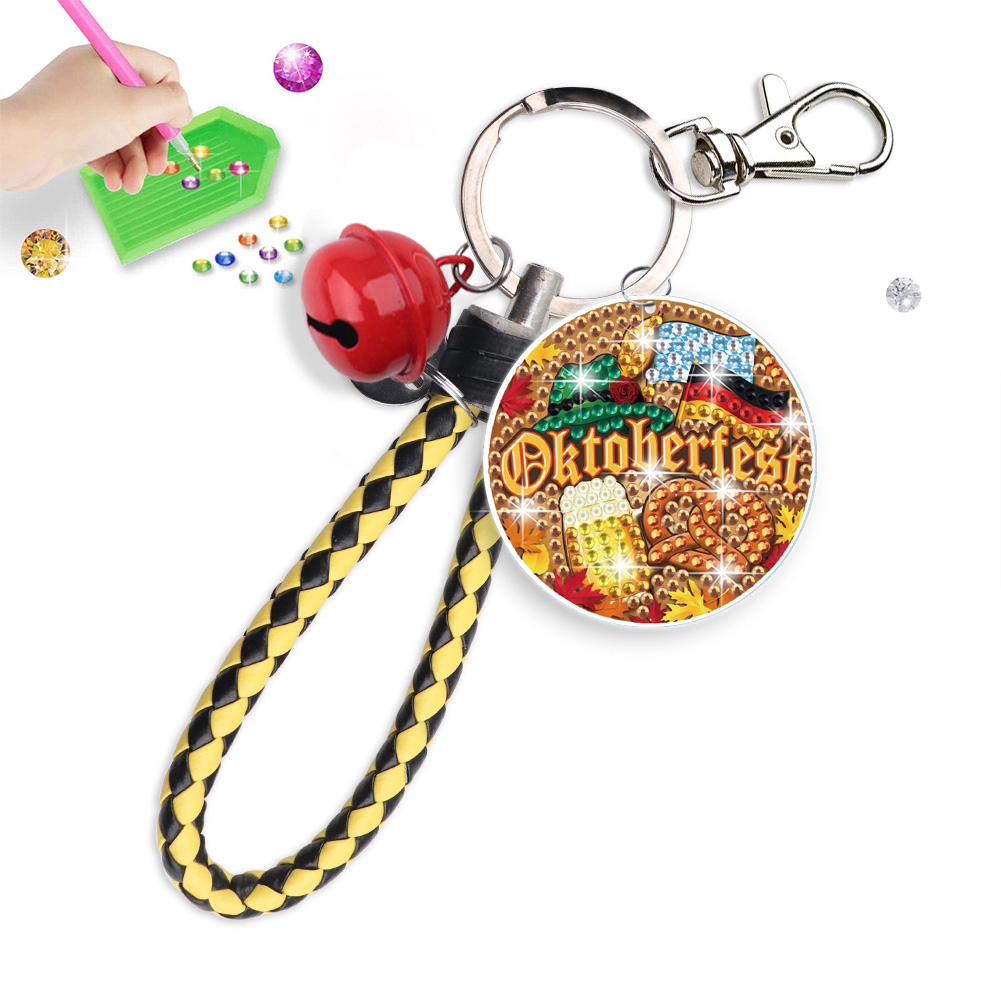 Double Sided Oktoberfest Rhinestone Painting Keychain Pendant for Party Supplies