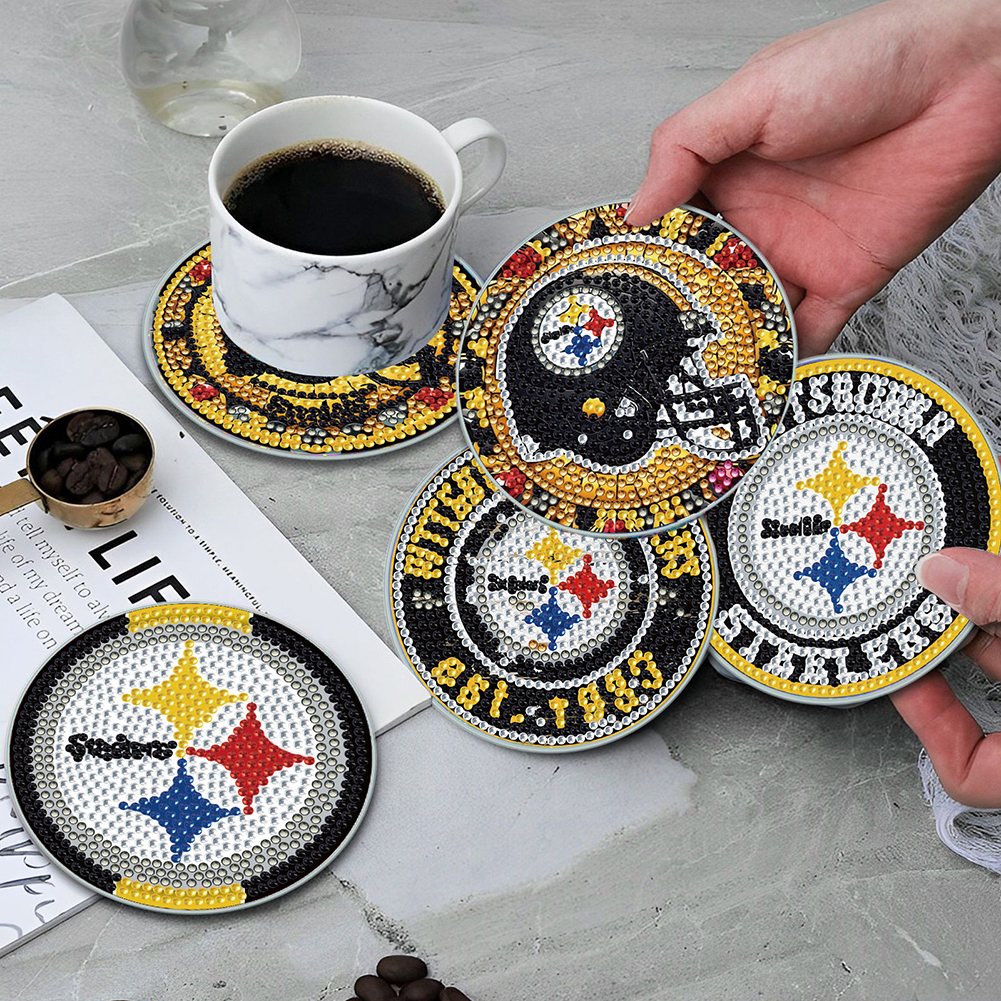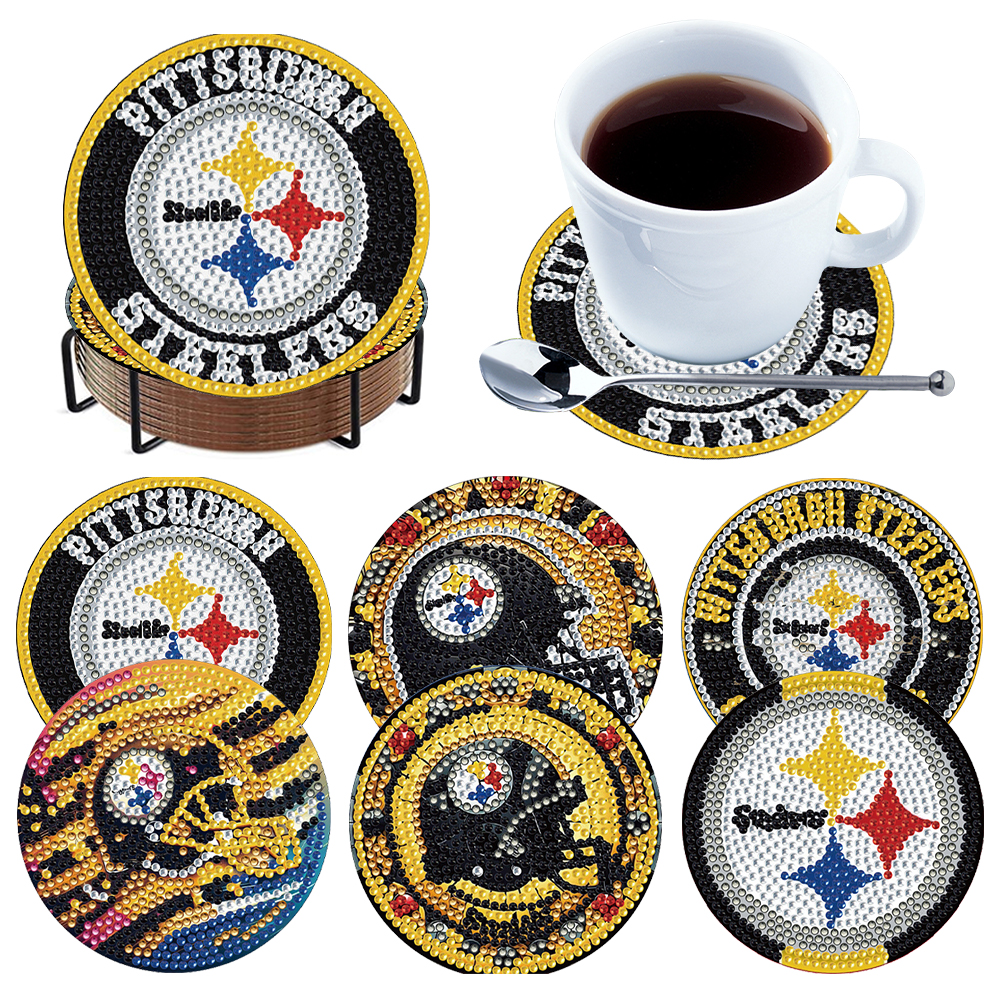 Pittsburgh Steelers 6pcs DIY Diamond Painting Acrylic Coasters Holder for Beginner Adult