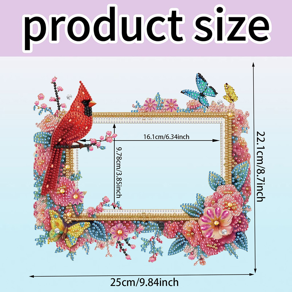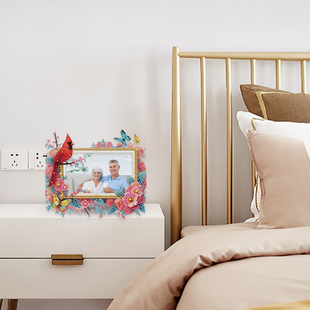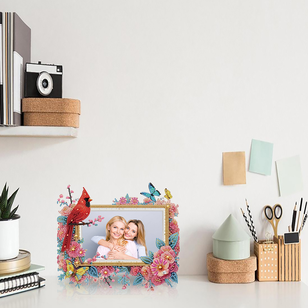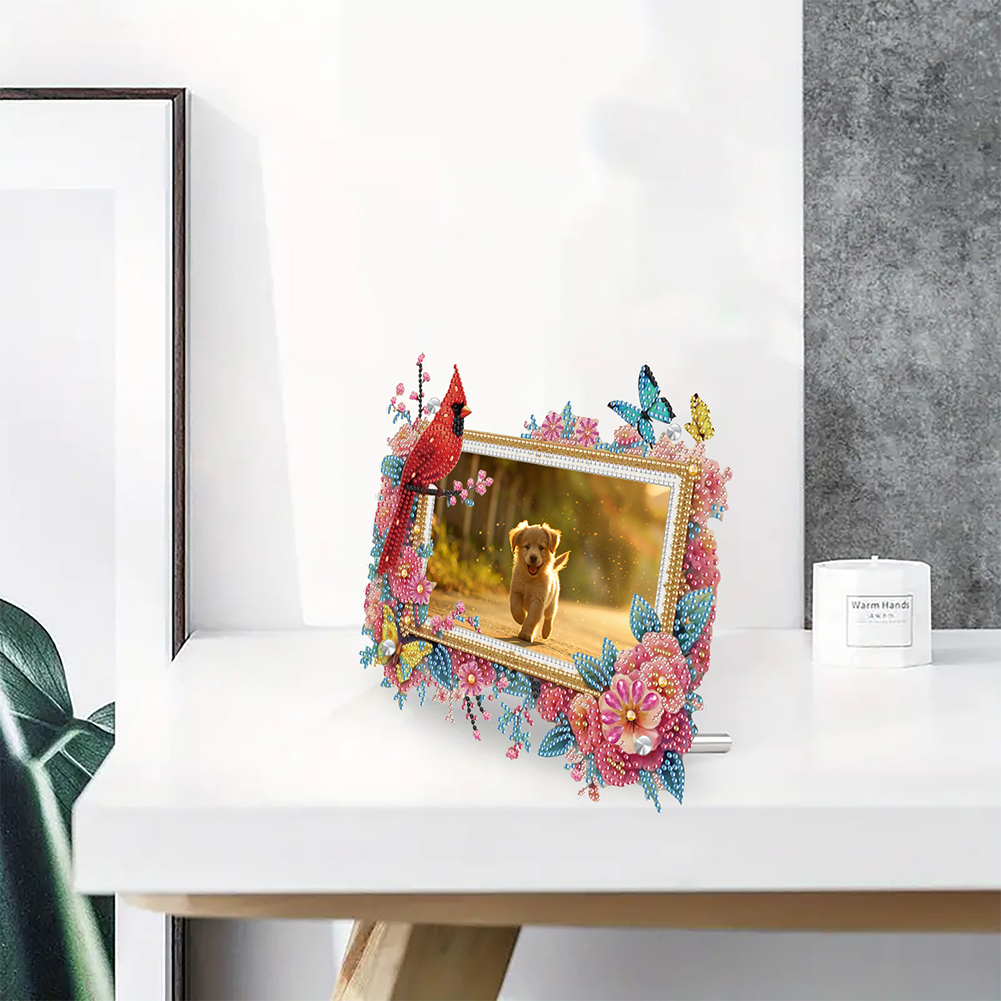 5D DIY Cardinal and Flower Acrylic Special Shape Diamond Painting Picture Frame