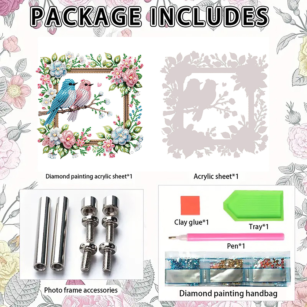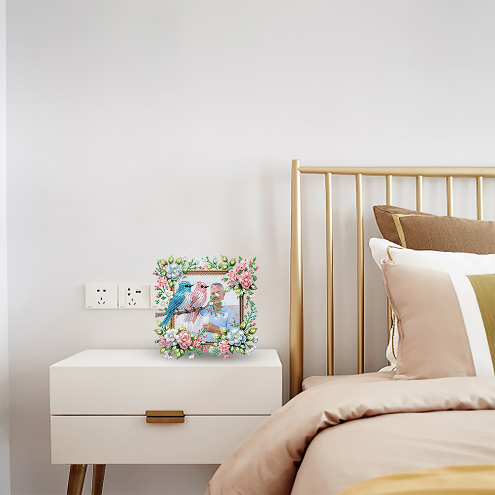 5D DIY Flower Bird Acrylic Special Shape Rhinestone Tabletop Photo Frame Kit