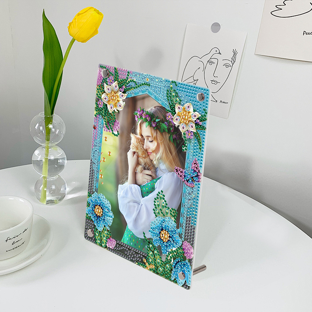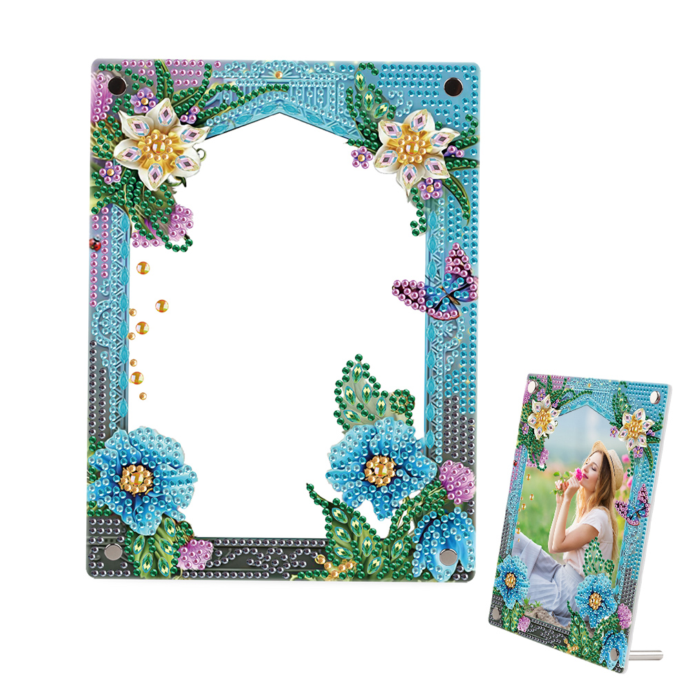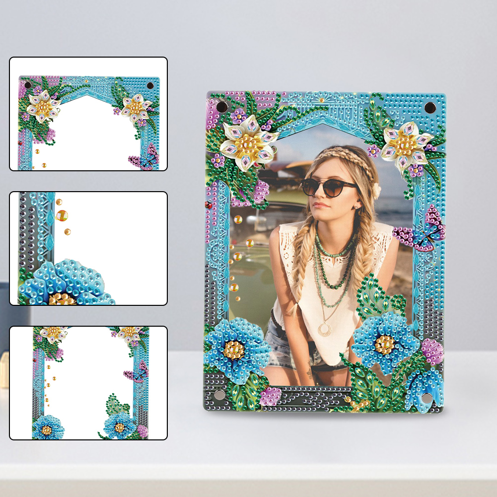 5D DIY Flower Blue Floral Special Shape Diamond Painting Photo Frame Home Decor