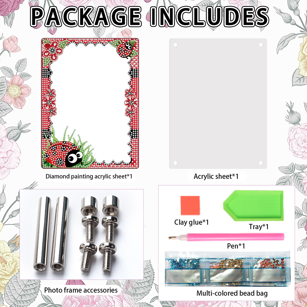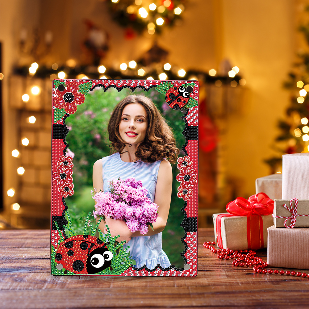 5D DIY Ladybug Floral Special Shape Diamond Painting Photo Frame Home Decor