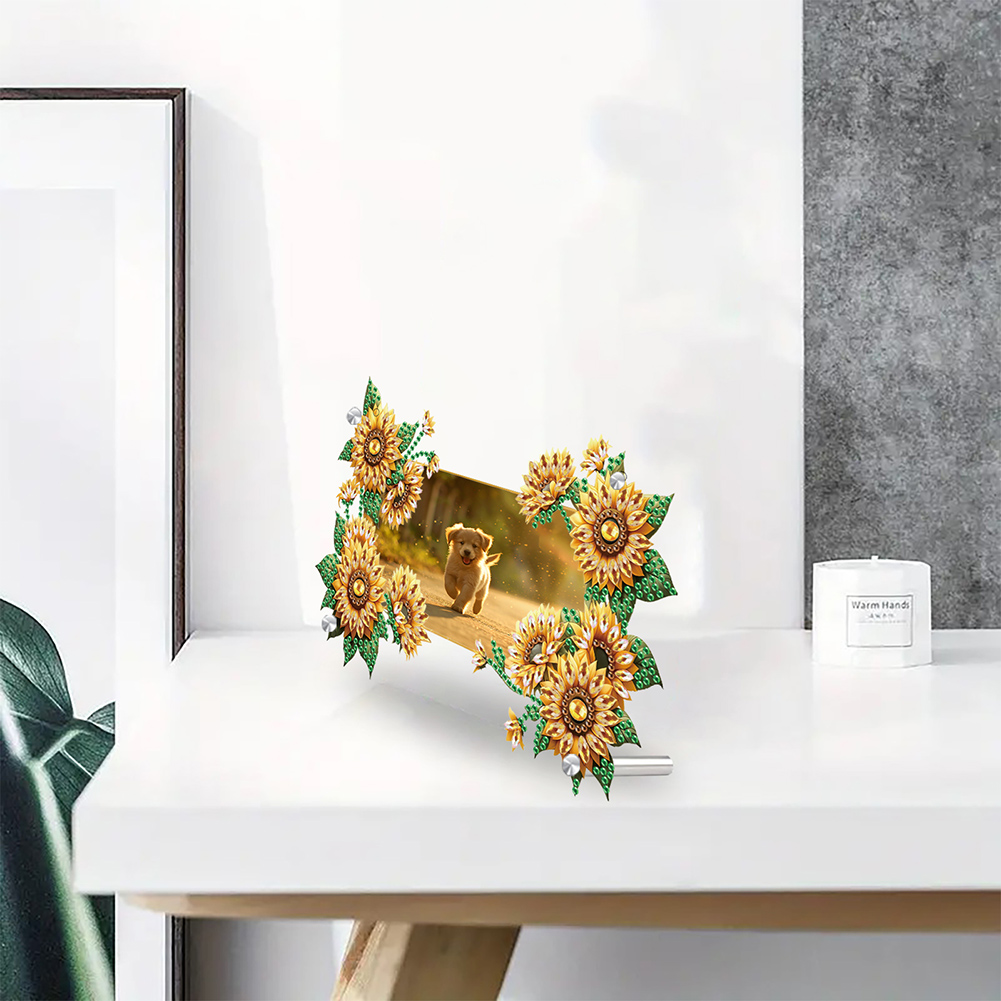 5D DIY Sunflower Acrylic Special Shape Rhinestone Tabletop Photo Frame Kit
