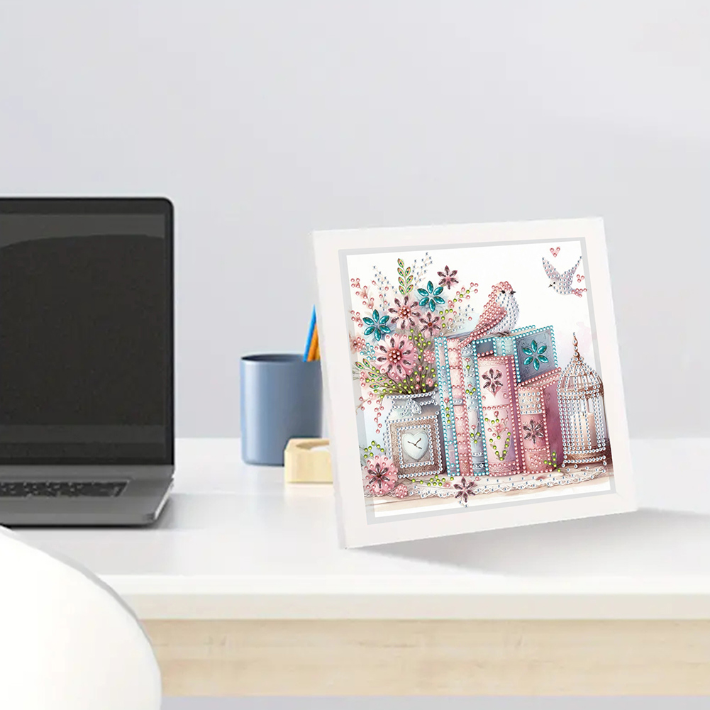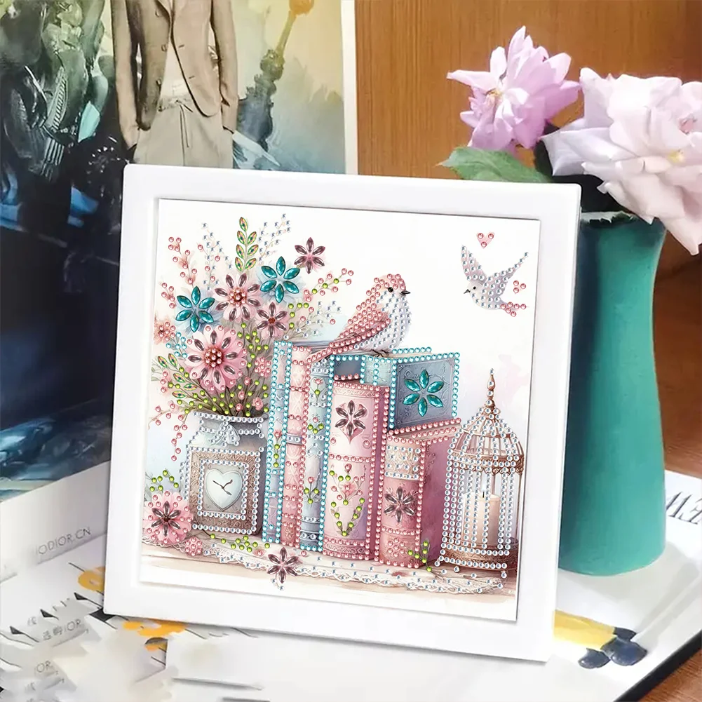 5D DIY Partial Special Shaped Drill Diamond Painting Bird Book Home Kit 19.2x19.2cm【With Frame】
