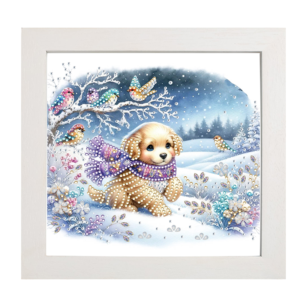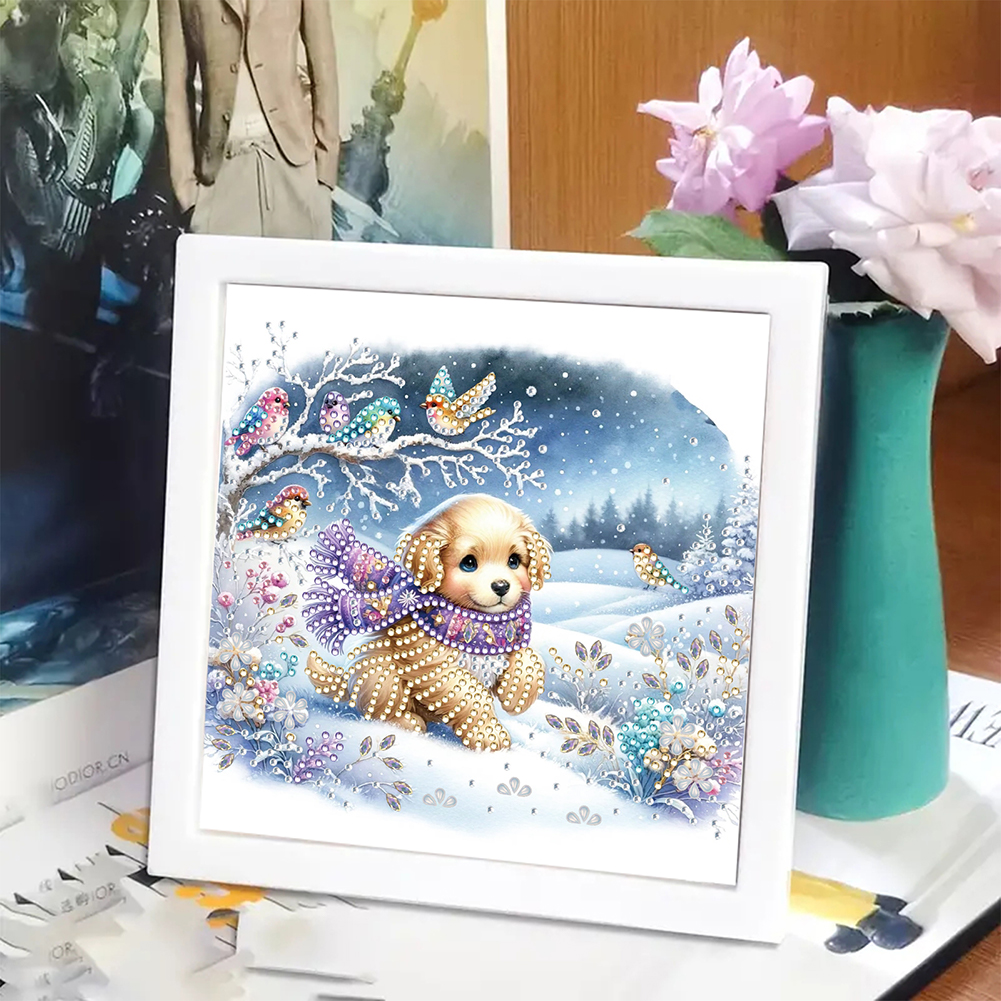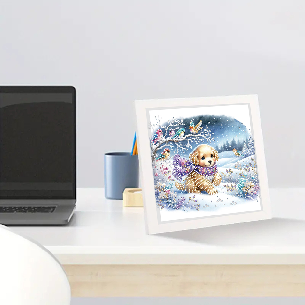 5D DIY Partial Special Shaped Drill Diamond Painting Kit Christmas Dog Decor(19.2*19.2cm)【With Frame】