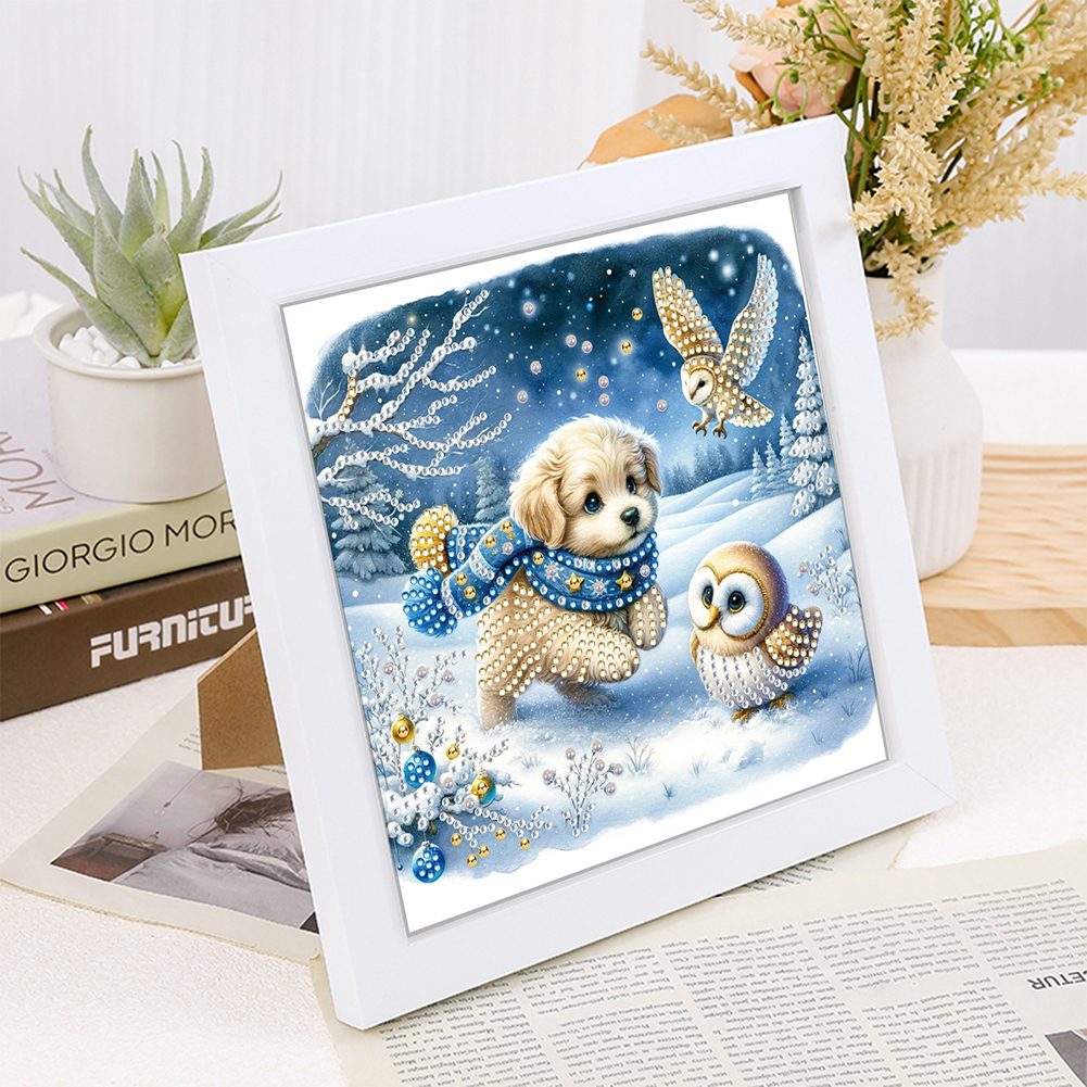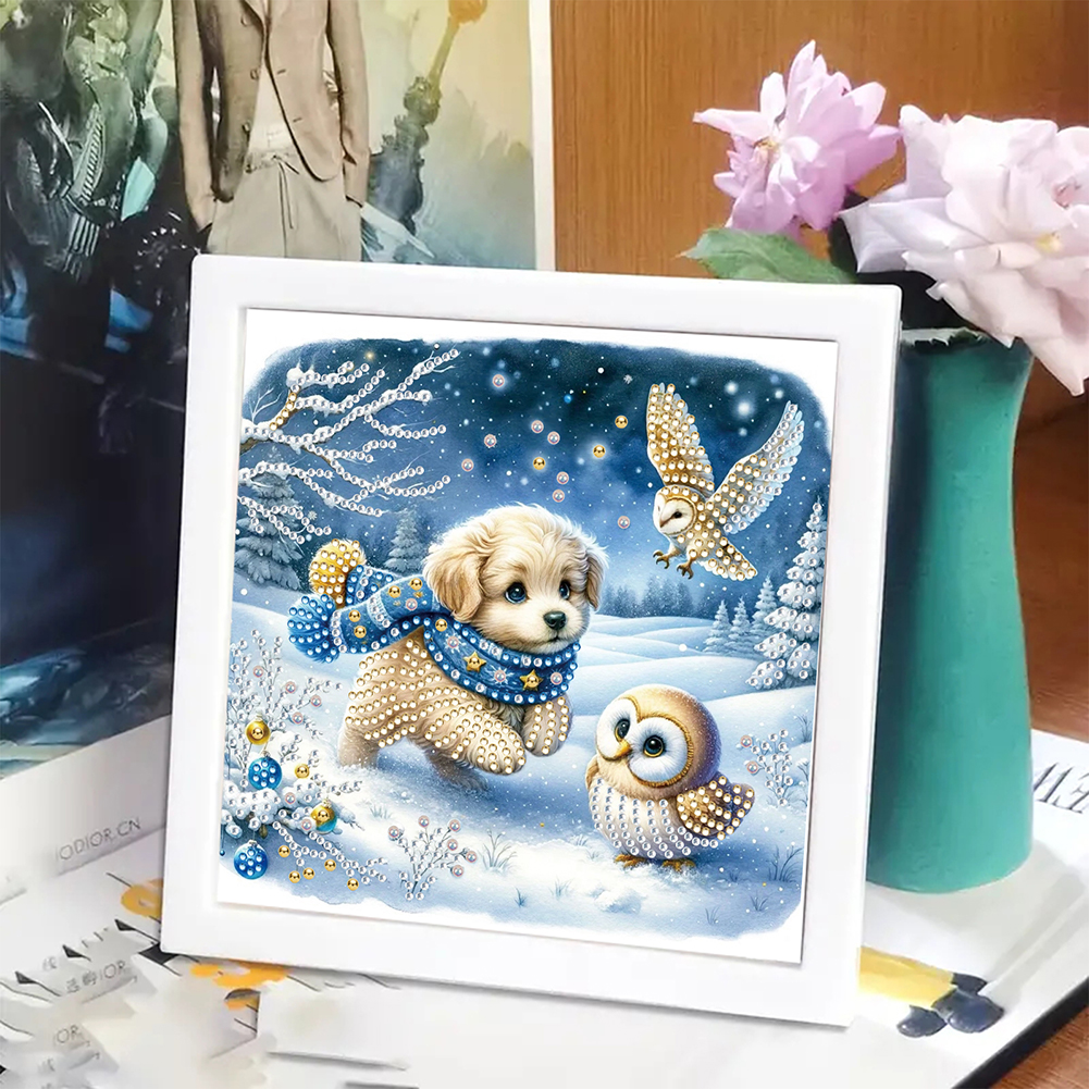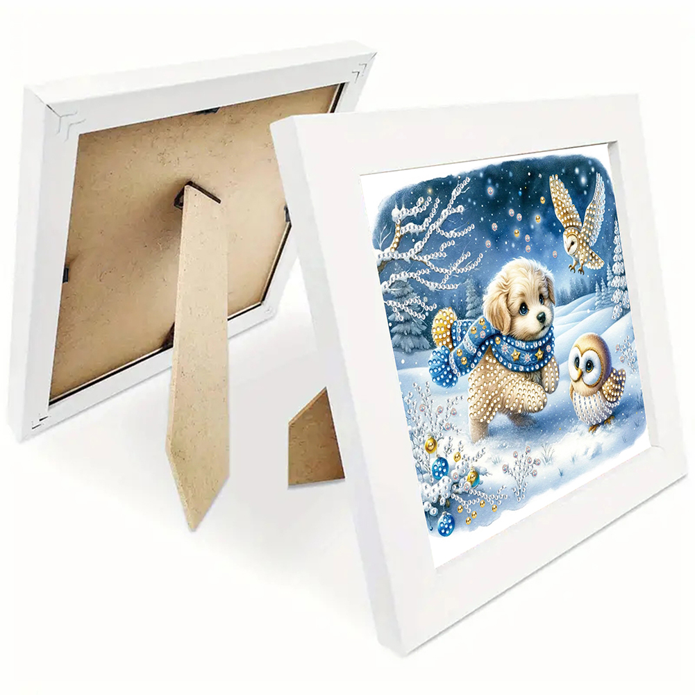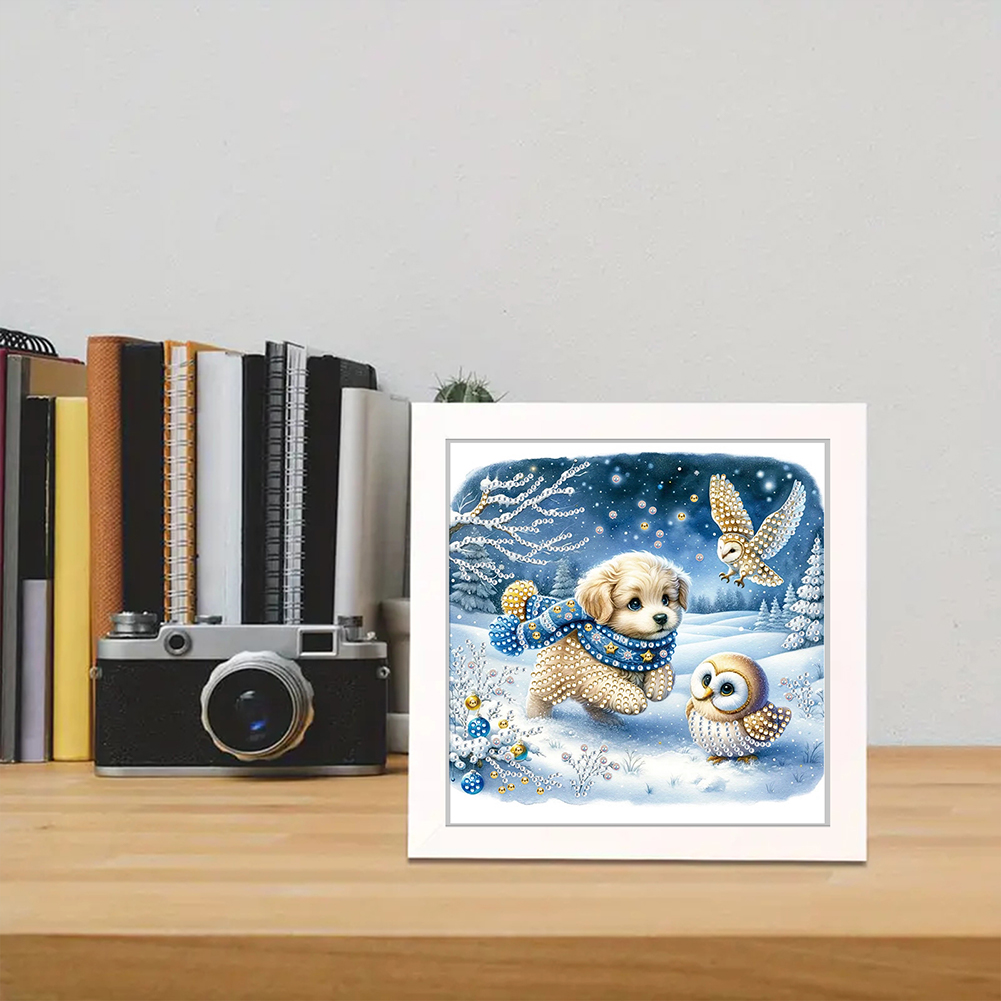 5D DIY Partial Special Shaped Drill Diamond Painting Kit Christmas Dog Decor(19.2*19.2cm)【With Frame】