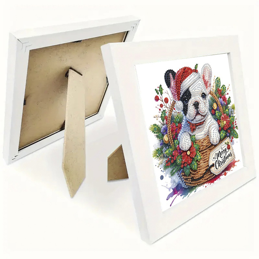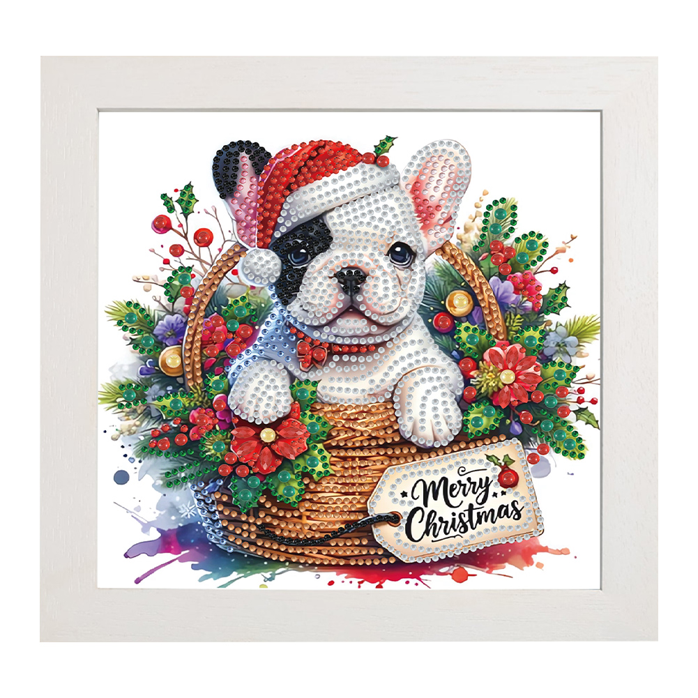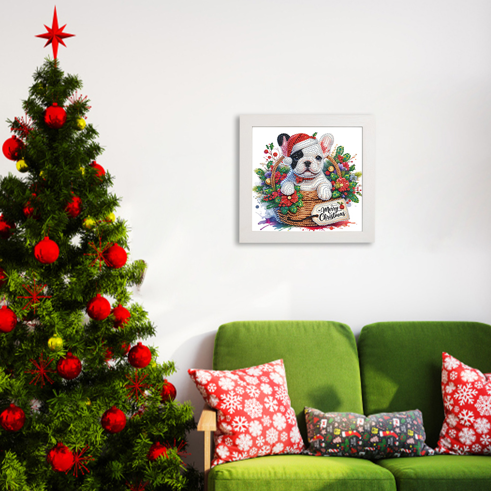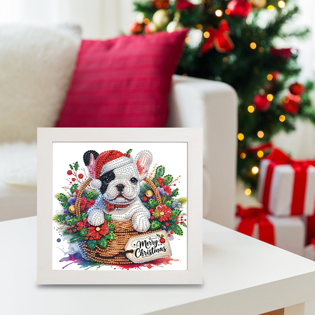 5D DIY Partial Special Shaped Drill Diamond Painting Xmas French Bulldog 22.8x22.8cm【With Frame】