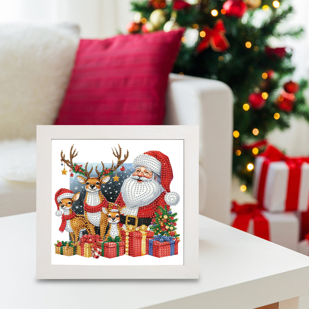 5D DIY Partial Special Shaped Drill Diamond Painting Xmas Santa Claus 22.8x22.8cm【With Frame】