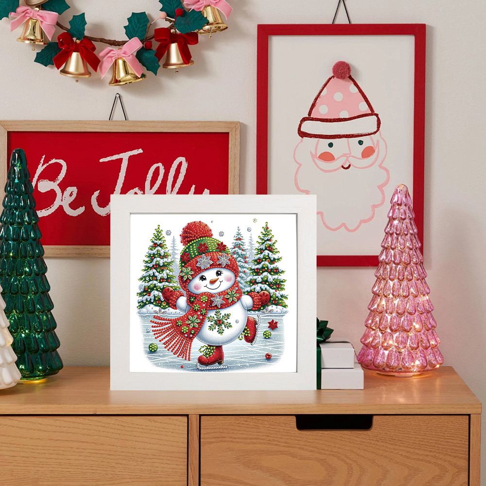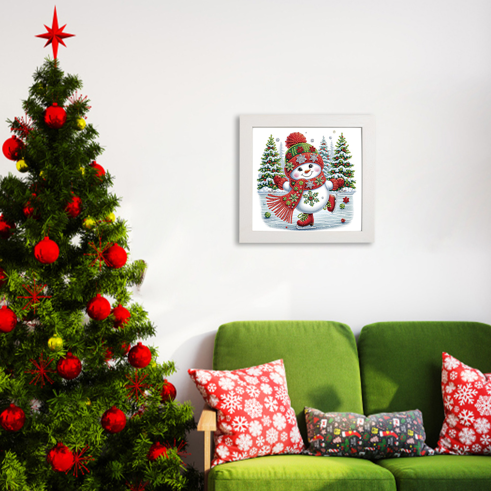 5D DIY Partial Special Shaped Drill Diamond Painting Xmas Snowman Home Kit 19.2x19.2cm【With Frame】