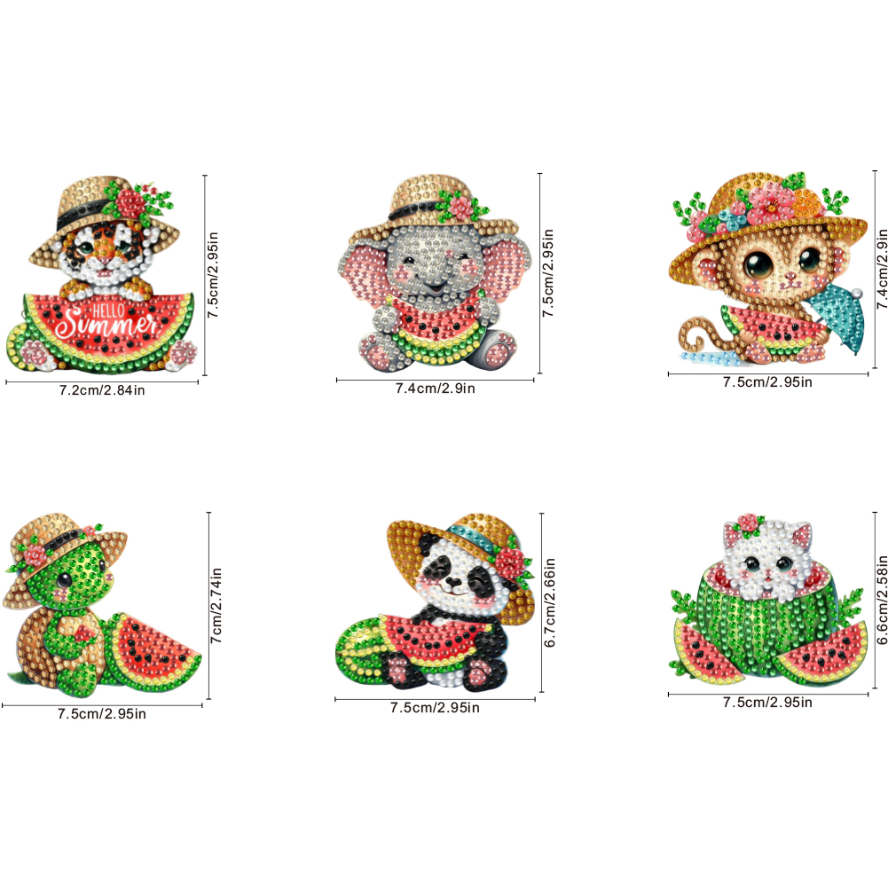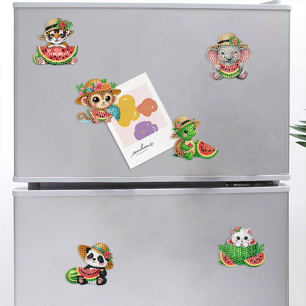 6pcs DIY Animals Watermelon Acrylic Special Shape Diamond Painting Fridge Magnets