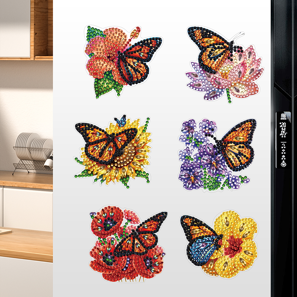 6Pcs DIY Flower Butterfly Diamond Painting Fridge Magnetic Sticker for Adults