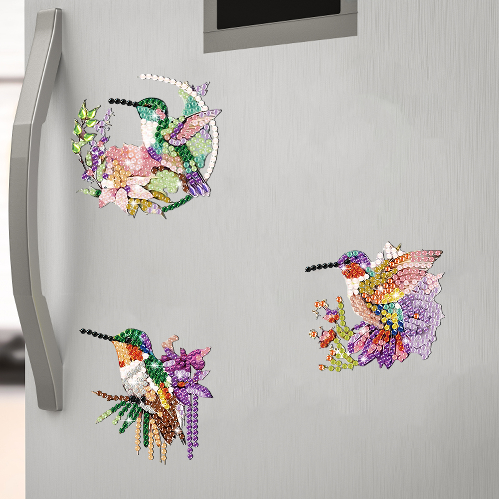 6Pcs DIY Hummingbird Special Shape Diamond Painting Fridge Magnet for DIY Crafts