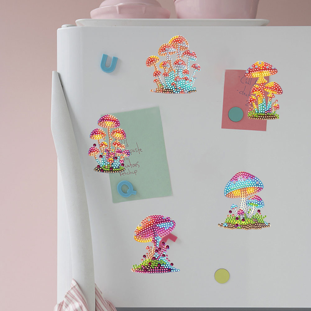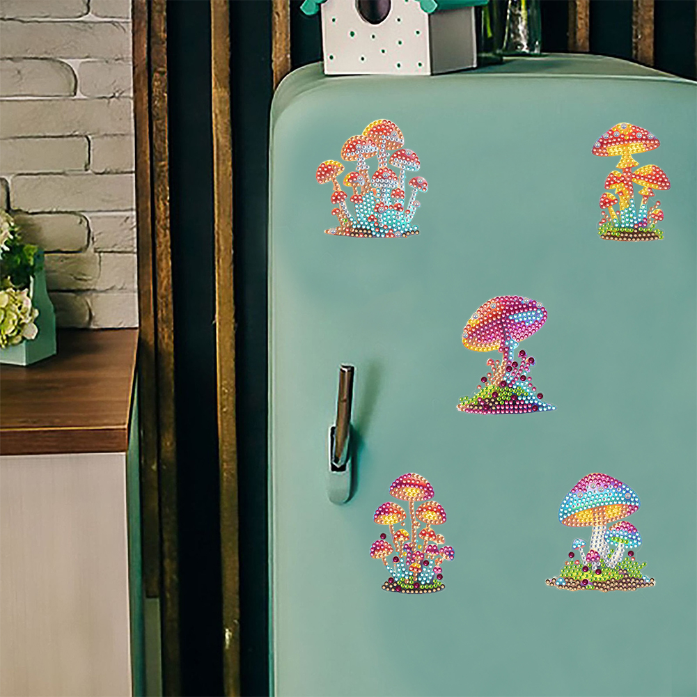 6pcs DIY Mushroom Special Shape Diamond Painting Fridge Magnet for Adults Kids Beginners