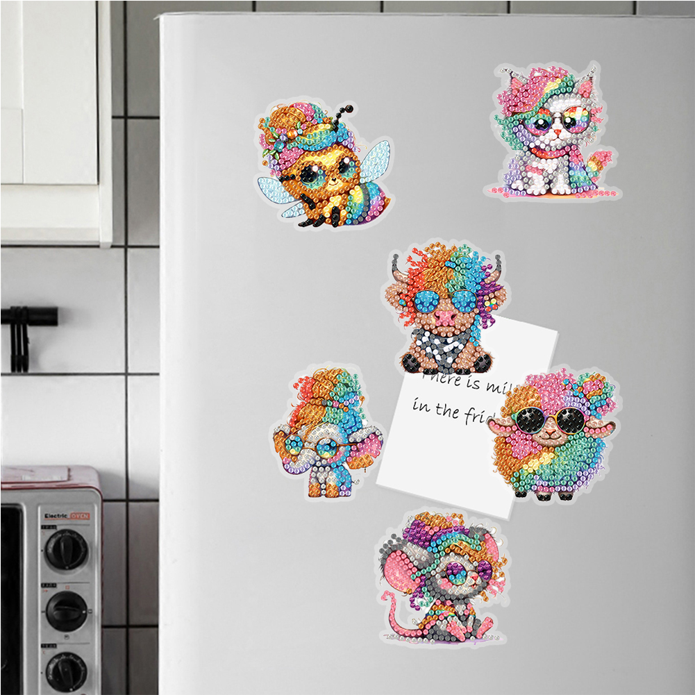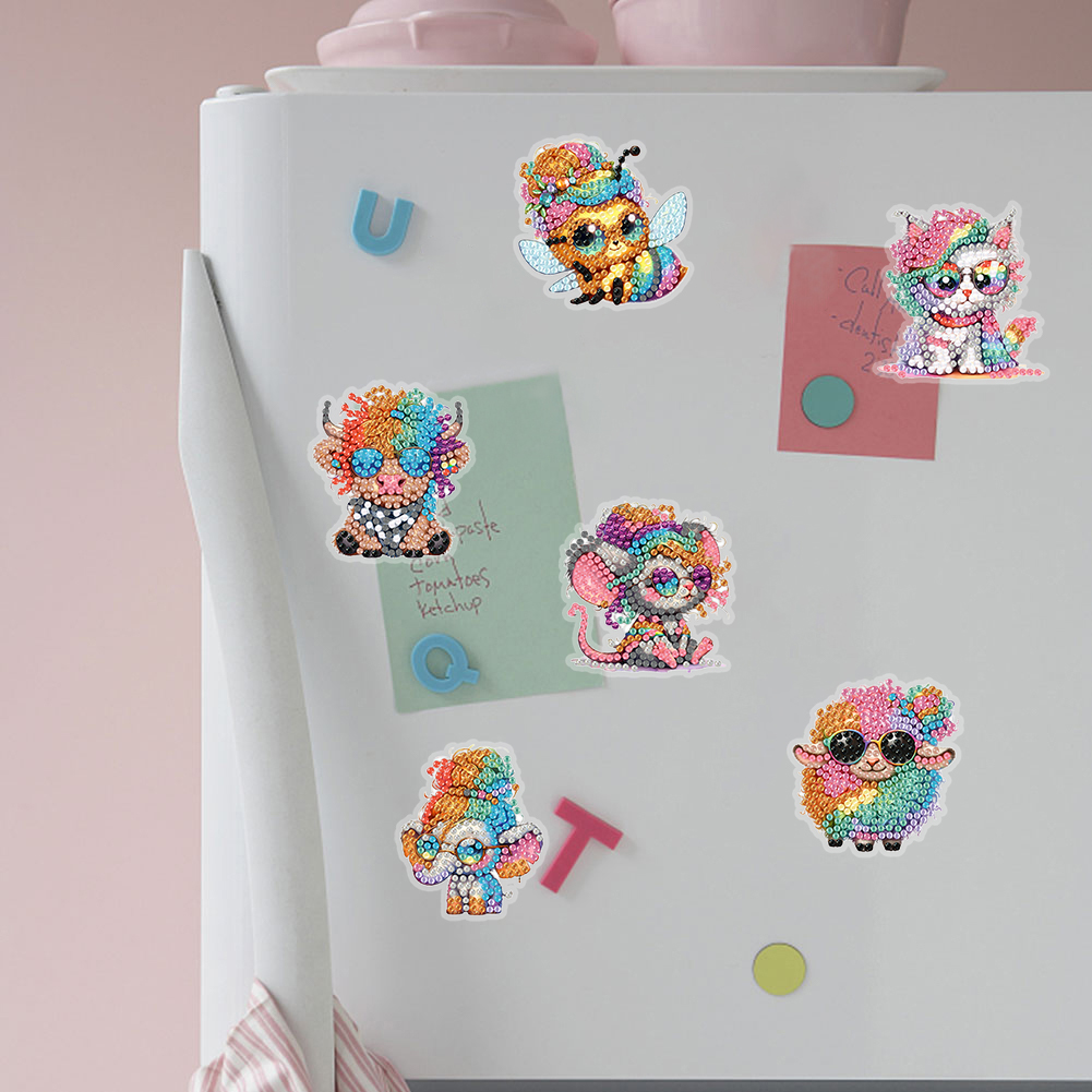 8Pcs Cartoon Animal Special Shape Diamond Painting Fridge Magnet Fridge Stickers