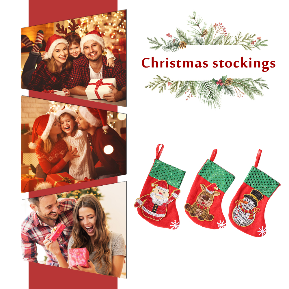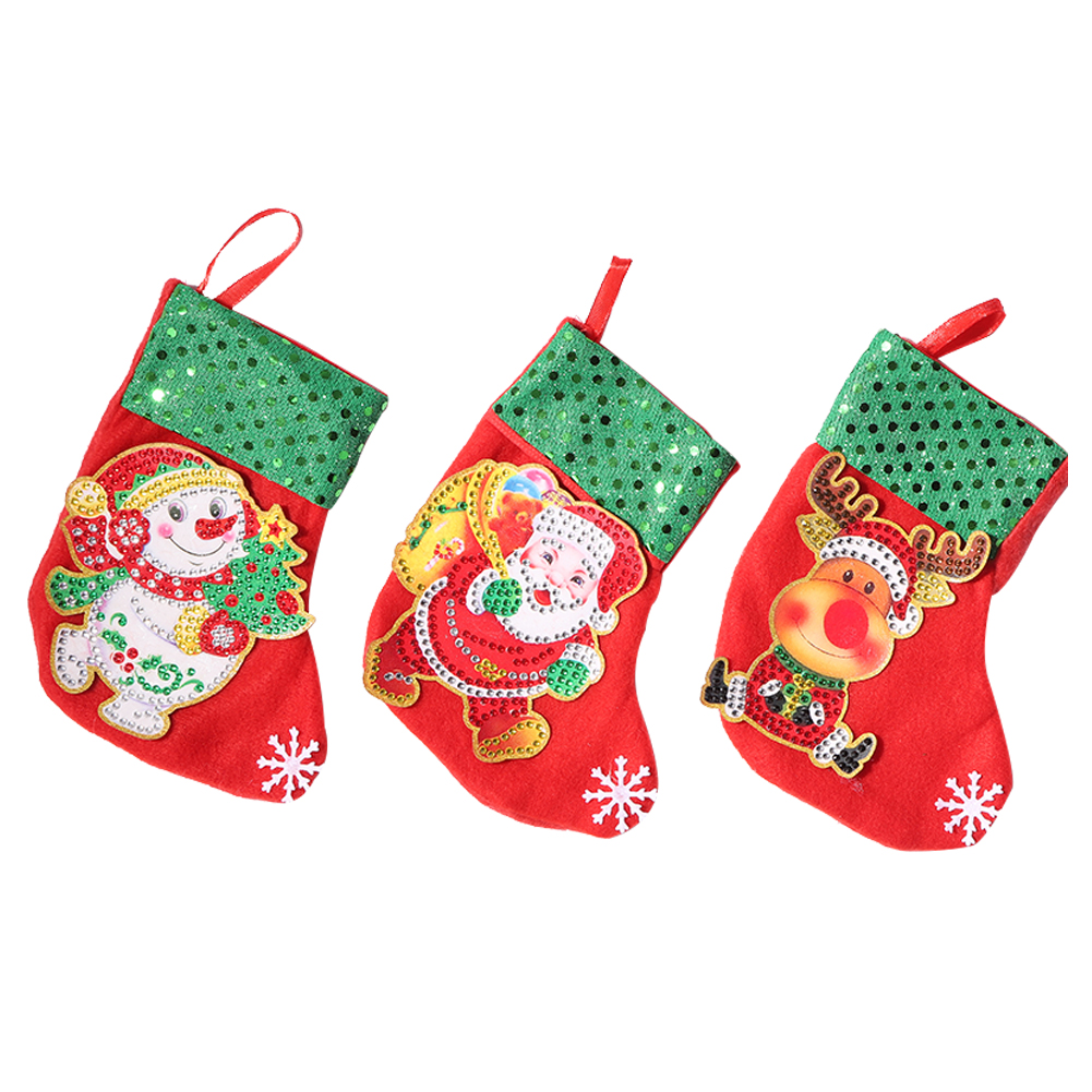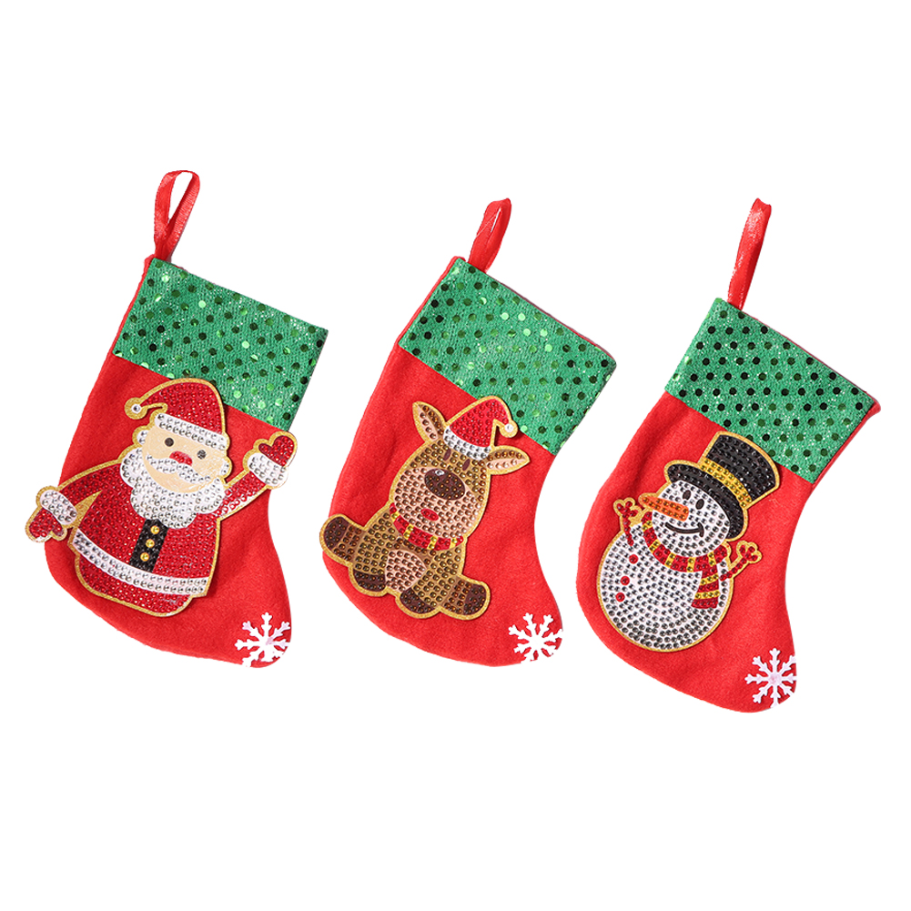 3pcs Stockings Pendants DIY Diamond Painting Christmas Tree Hanging Decoration Socks Candy Gift Bags Rhinestone Picture Handmade Artwork Kit