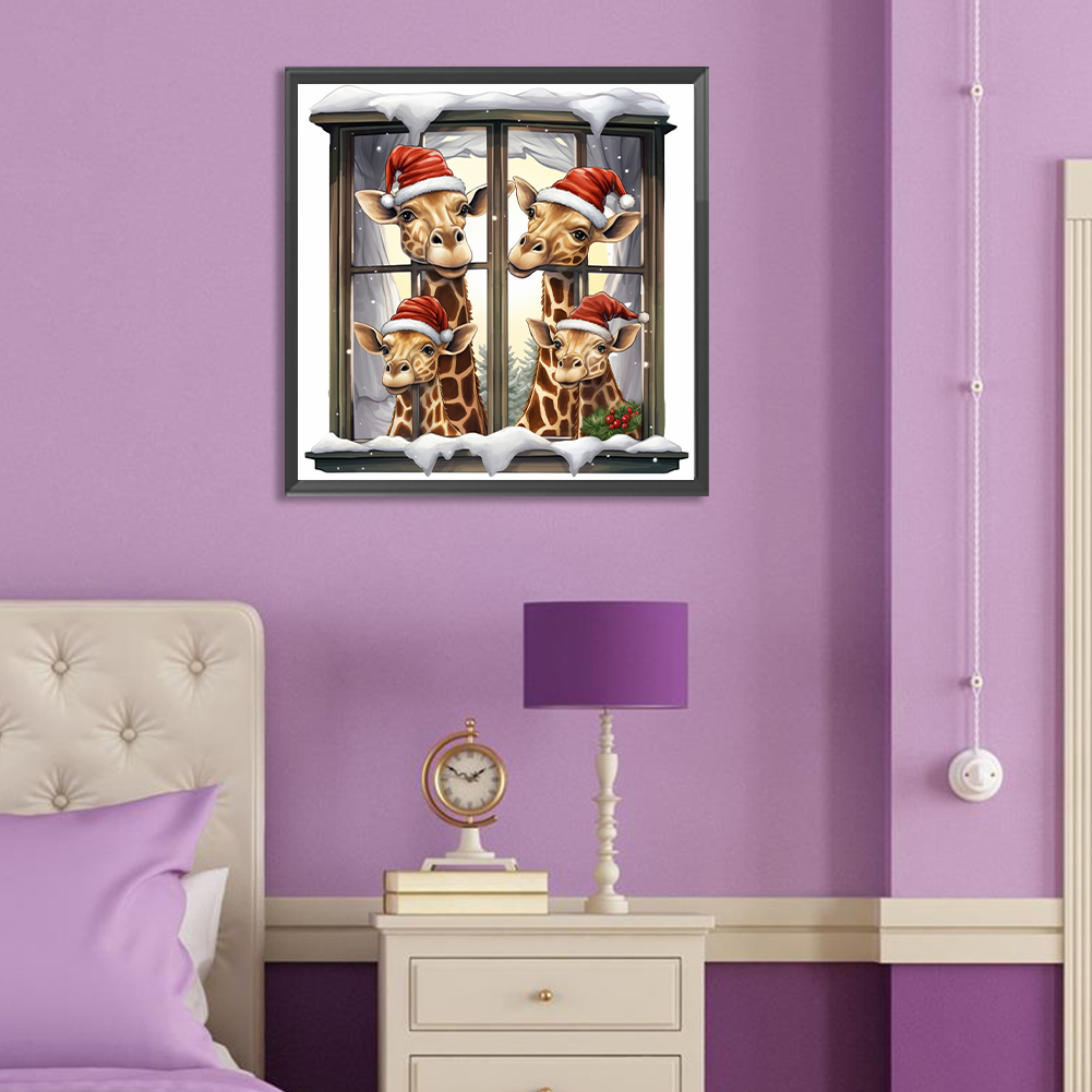 Diamond Painting - Full Round Drill - Window Xmas Giraffe(Canvas|30*30cm)