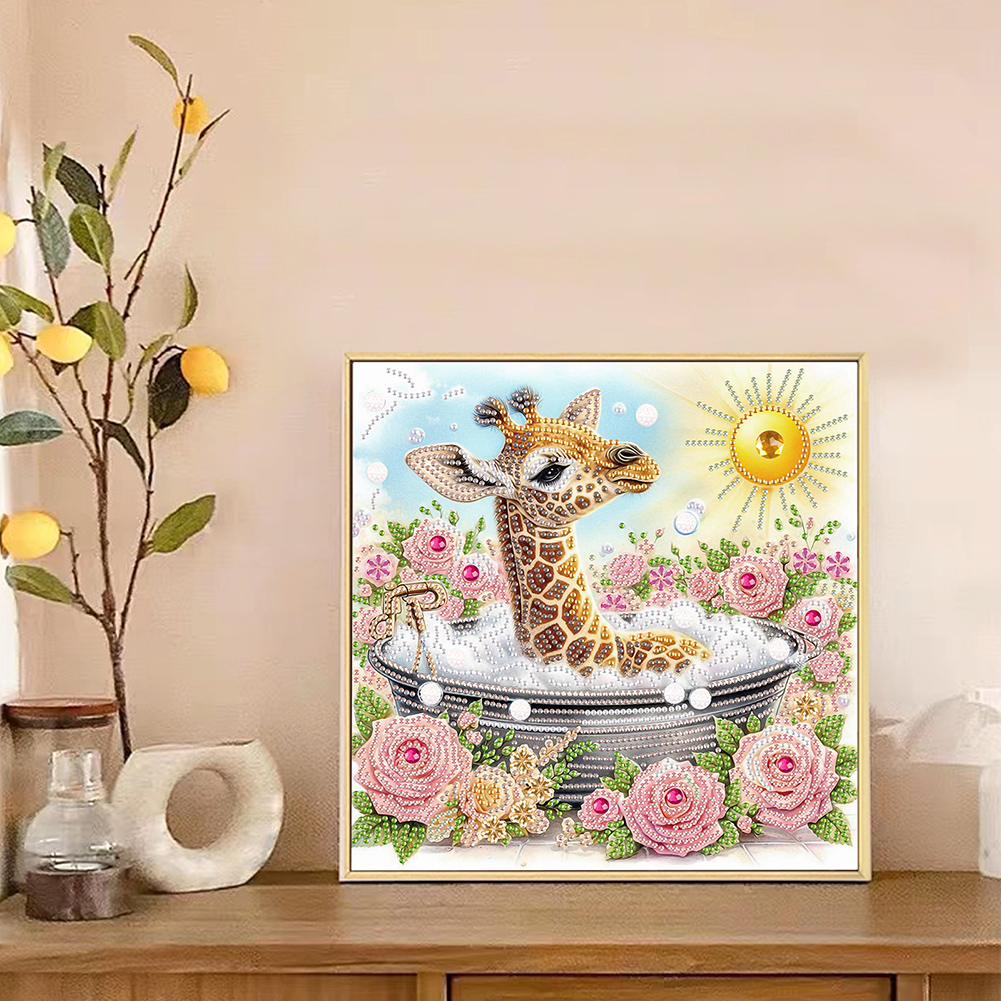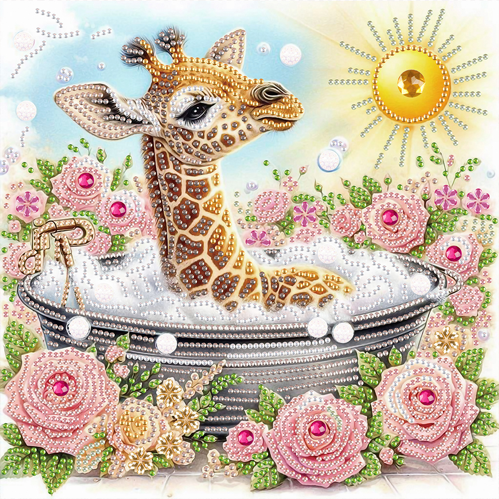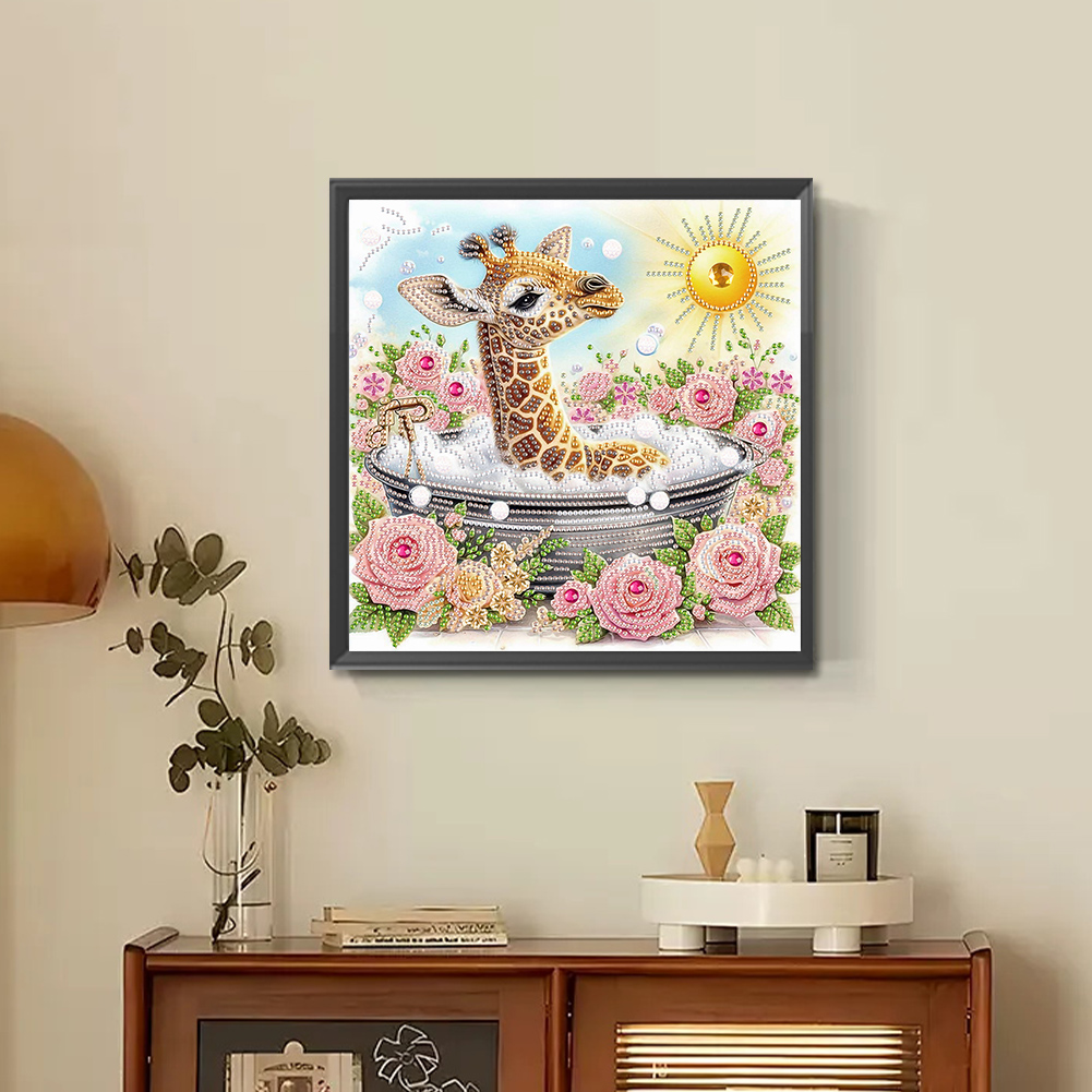 Diamond Painting - Partial Special Shaped Drill - Cute Flower Giraffe(Canvas|30*30cm)