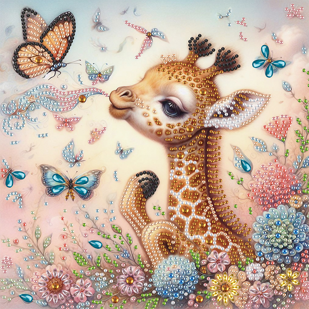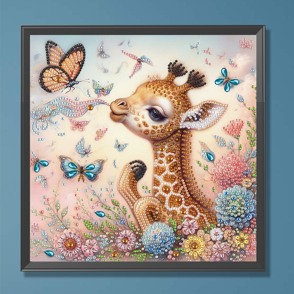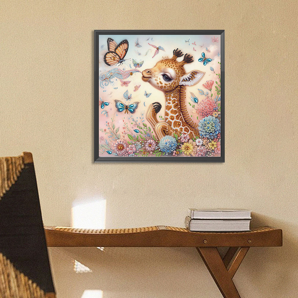 Diamond Painting - Partial Special Shaped Drill - Cute Flower Giraffe(Canvas|30*30cm)