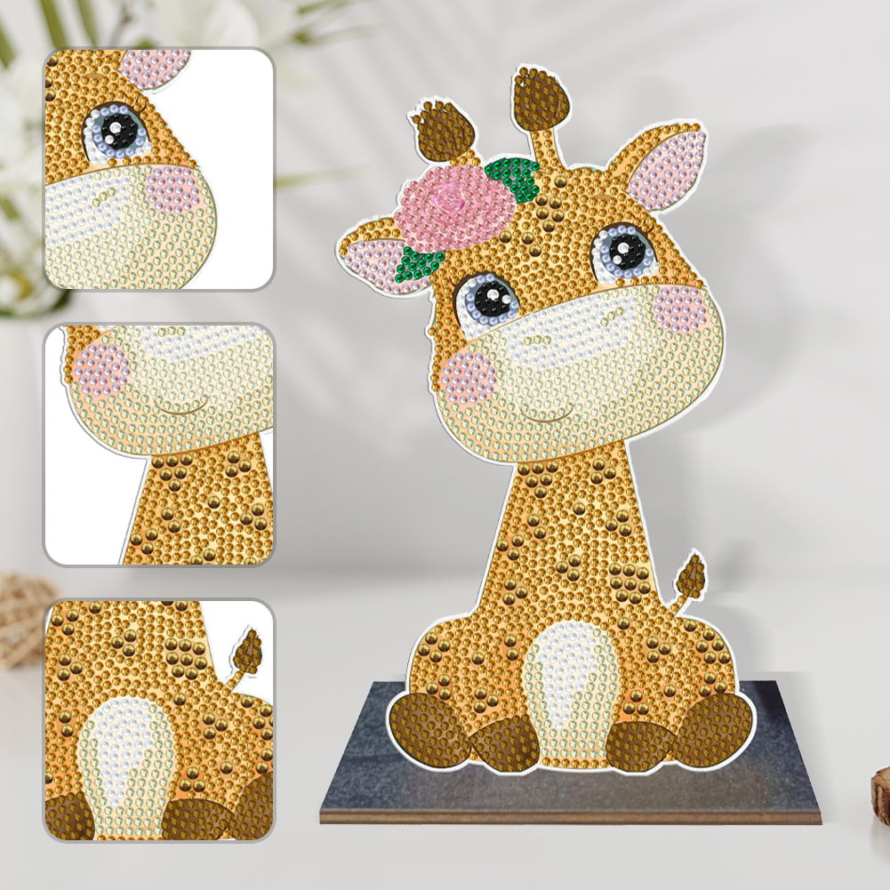 Wooden Desktop Diamond Painting Ornament Diamond Table Decor (Baby Giraffe #3)