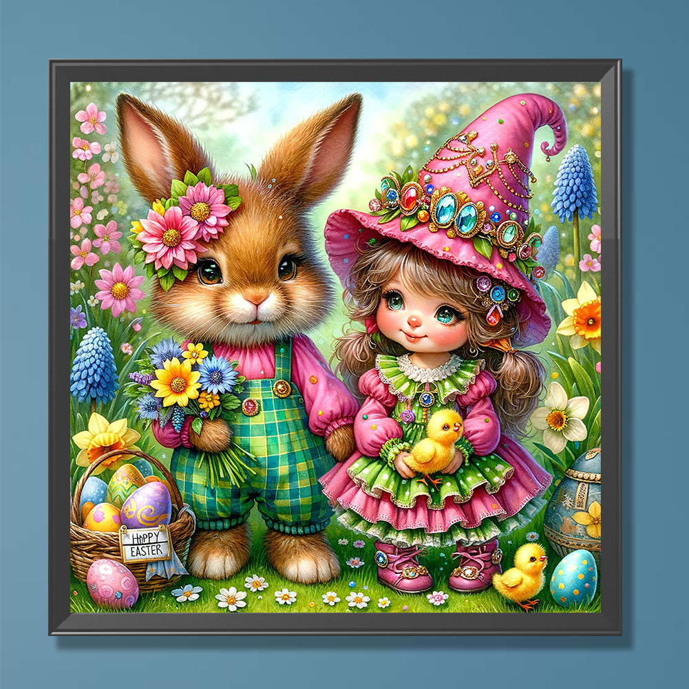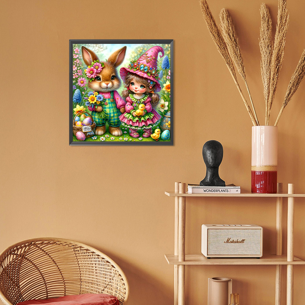 Diamond Painting - Full Round Drill - Easter Rabbit Girl(Canvas|30*30cm)