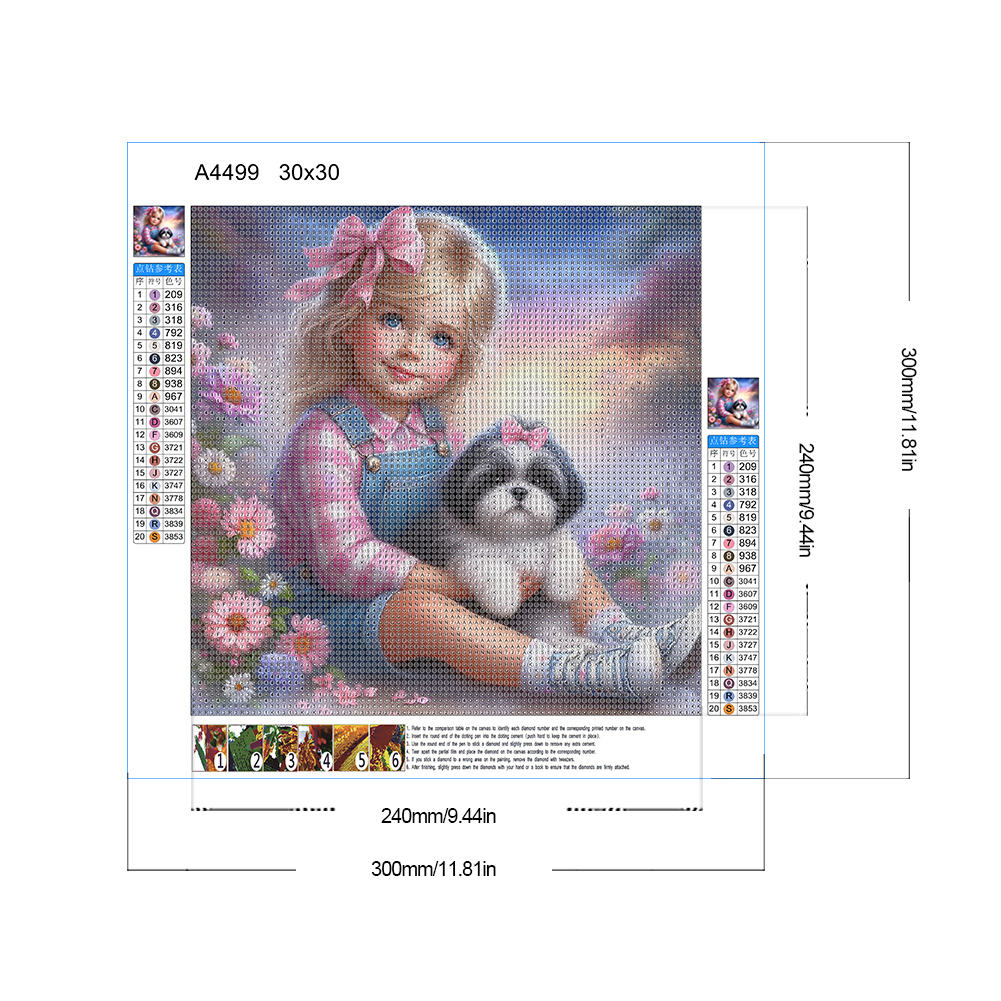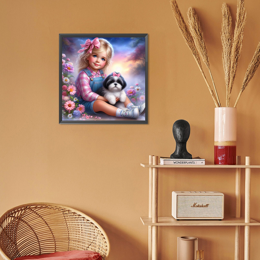 Diamond Painting - Full Round Drill - Garden Girl Dog(Canvas|30*30cm)