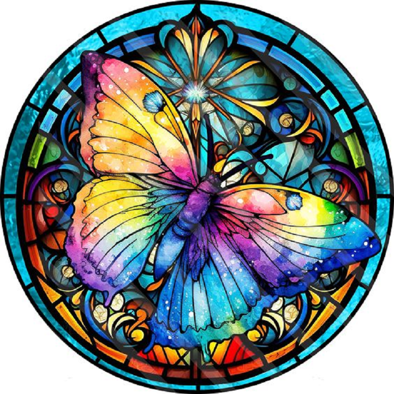 Diamond Painting - Full Round Drill - Stained Glass Butterfly(30*30cm)