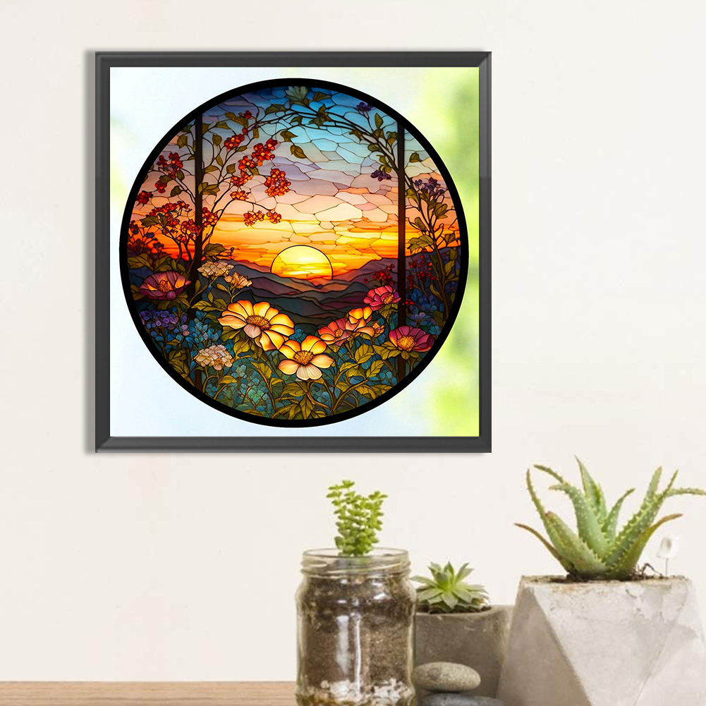 Diamond Painting - Full Round Drill - Stained Glass Flower(30*30cm)