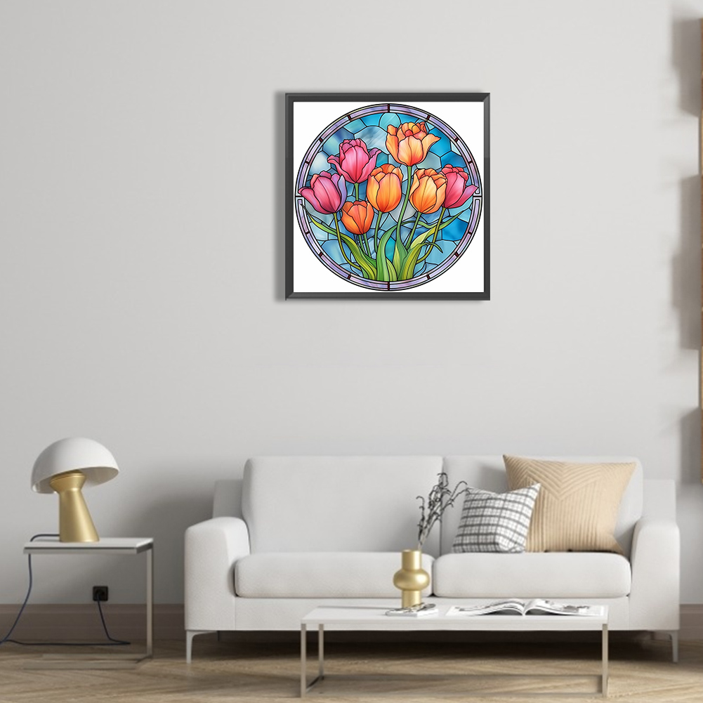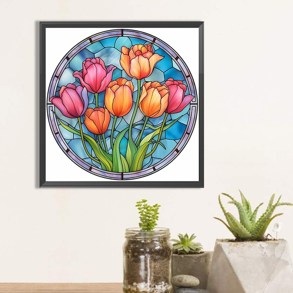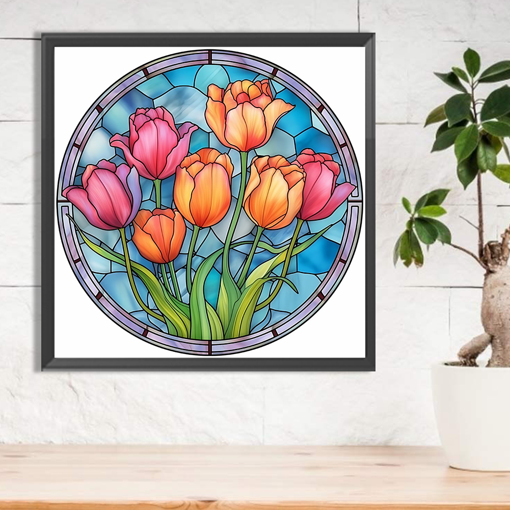 Diamond Painting - Full Round Drill - Stained Glass Flower(30*30cm)