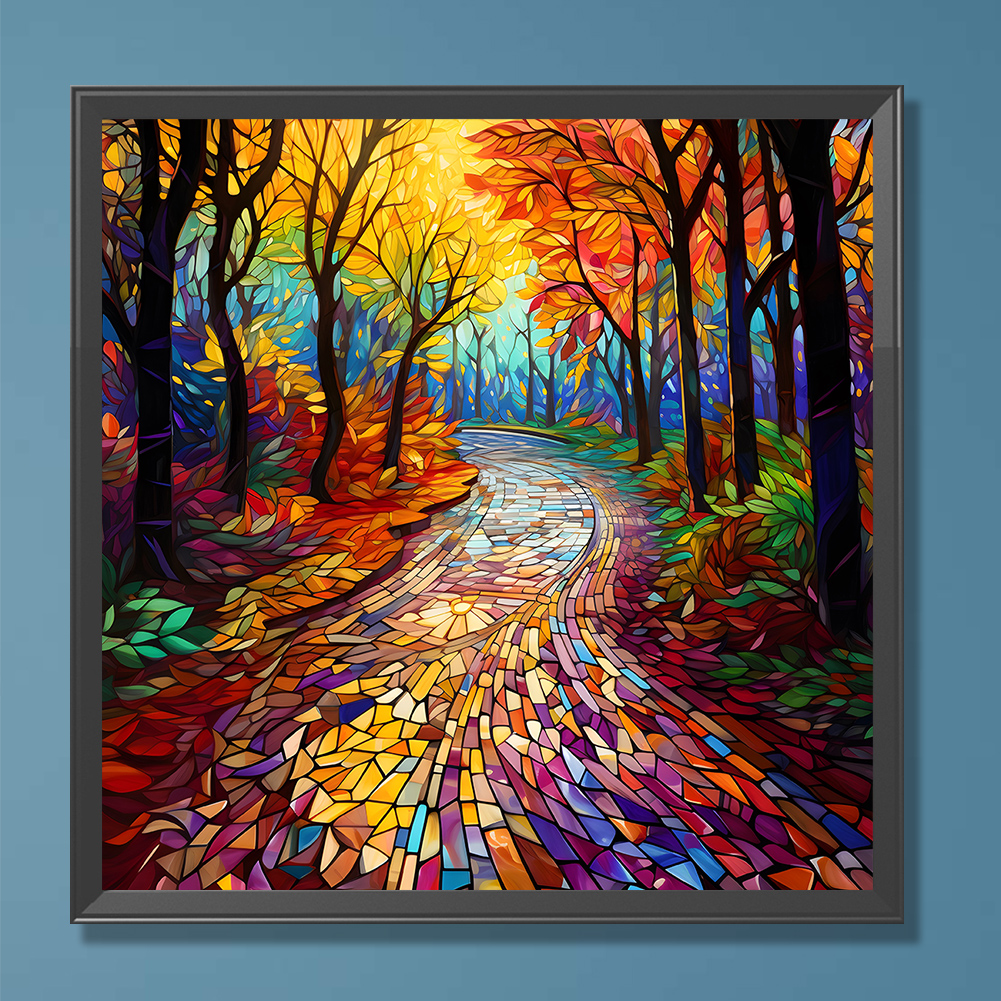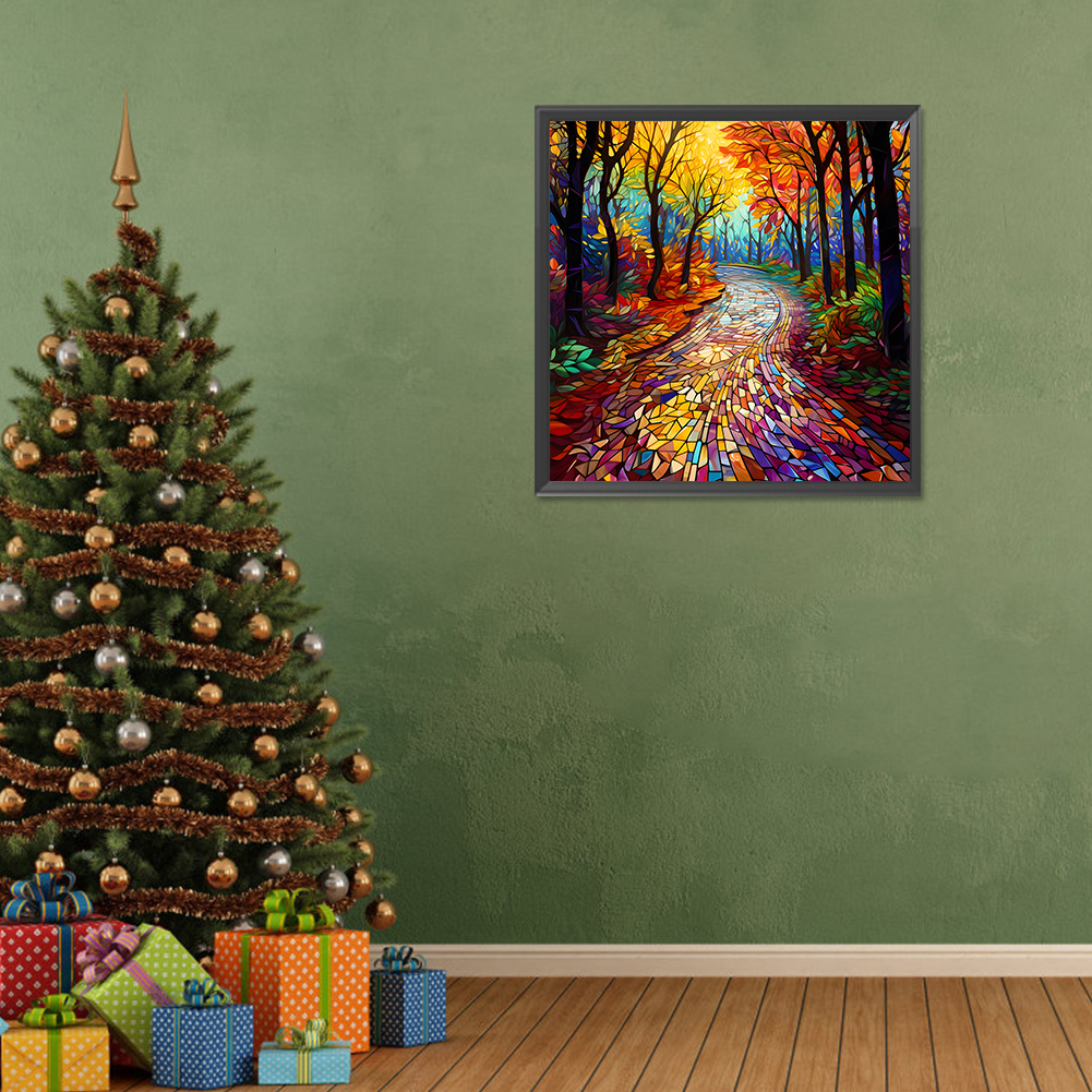 Diamond Painting - Full Round Drill - Stained Glass Maple Leaf Forest(Canvas|30*30cm)