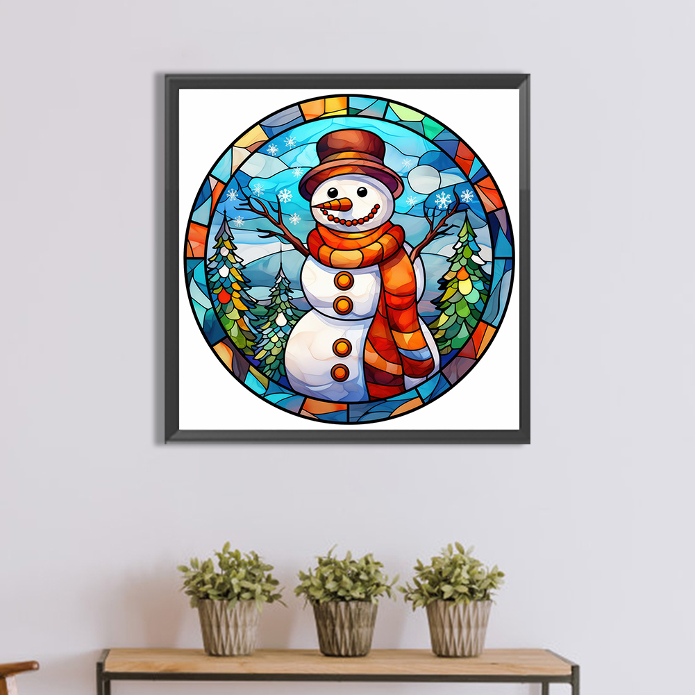 Diamond Painting - Full Round Drill - Stained Glass Snowman(Canvas|30*30cm)