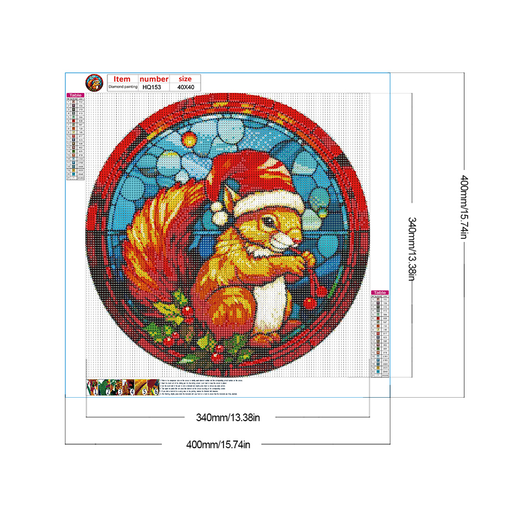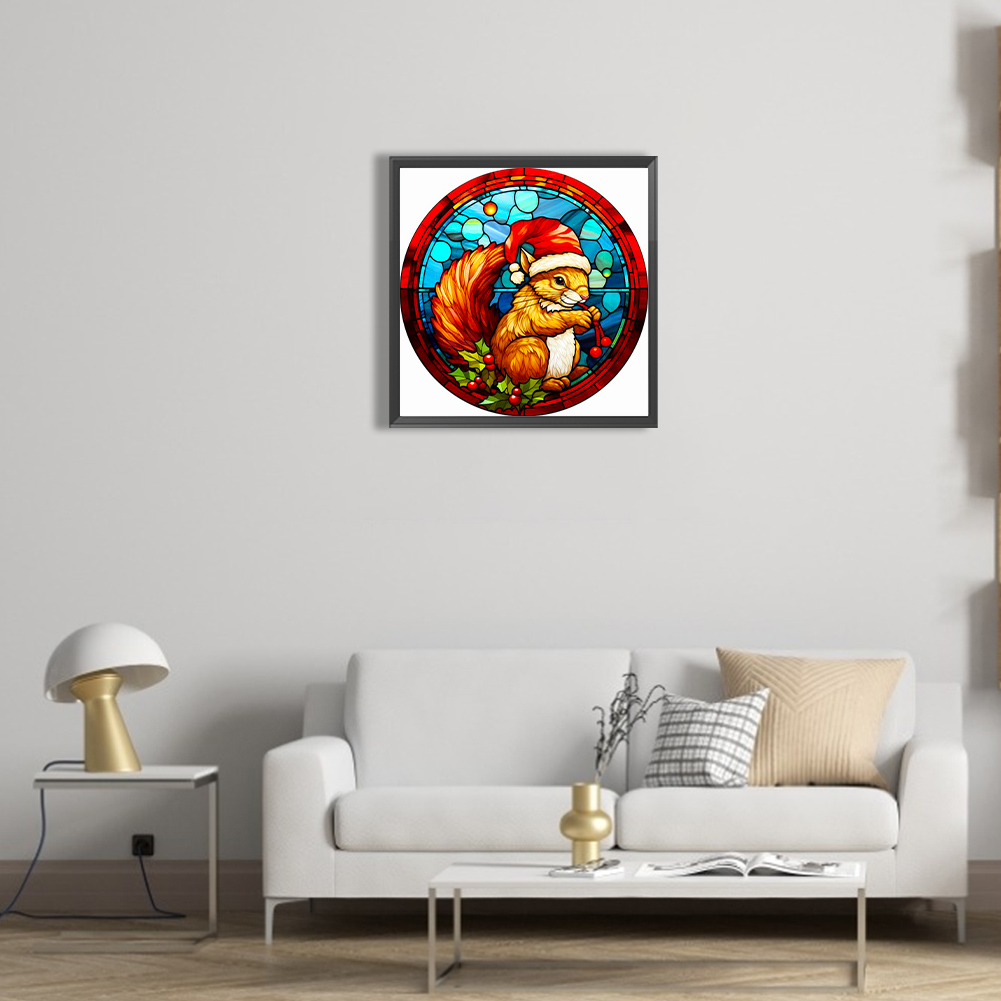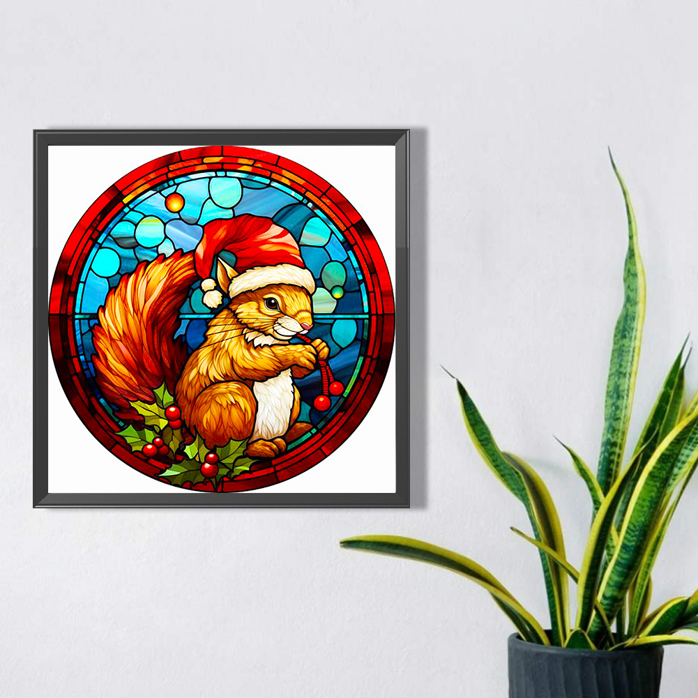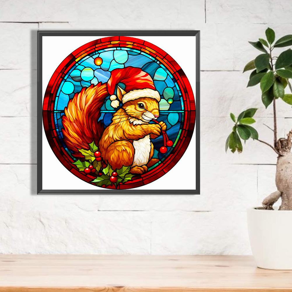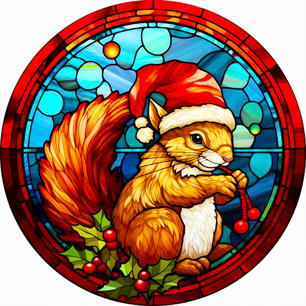 Diamond Painting - Full Round Drill - Stained Glass Xmas Squirrel(Canvas|40*40cm)