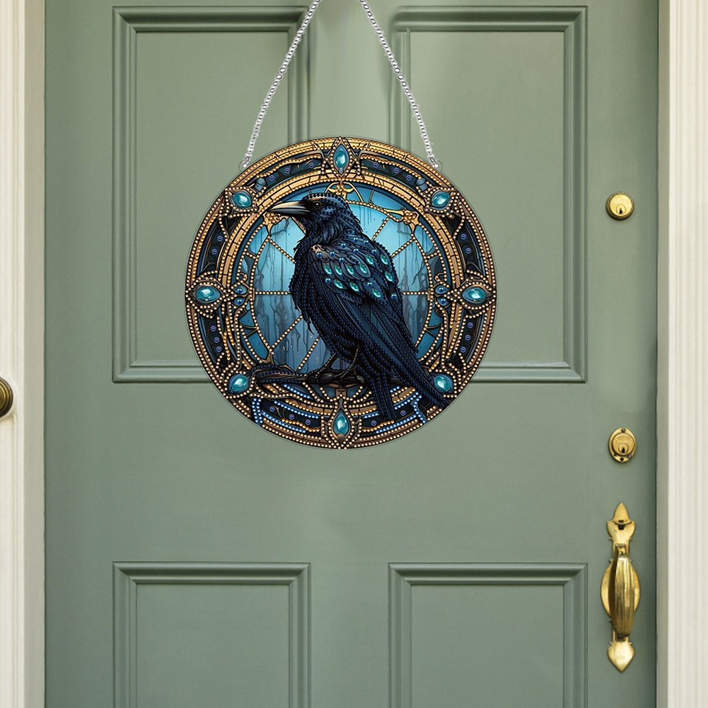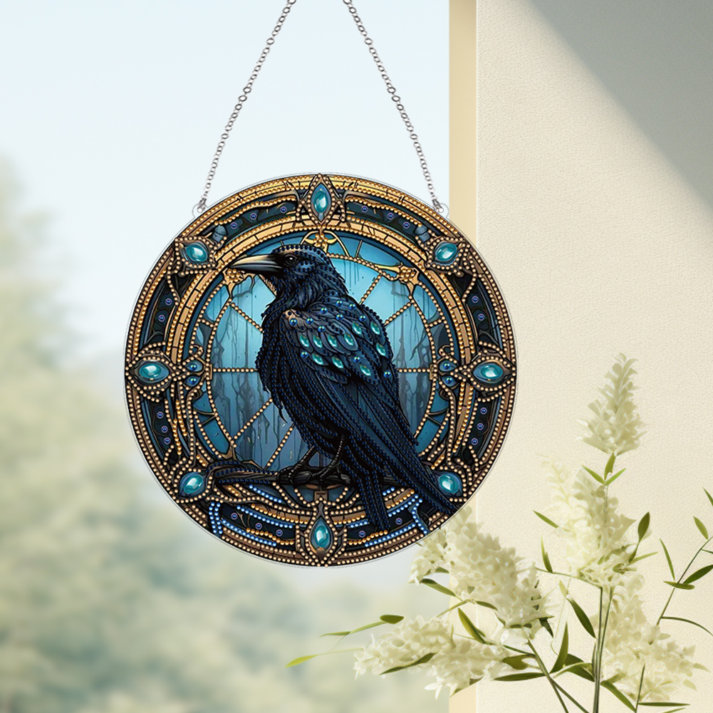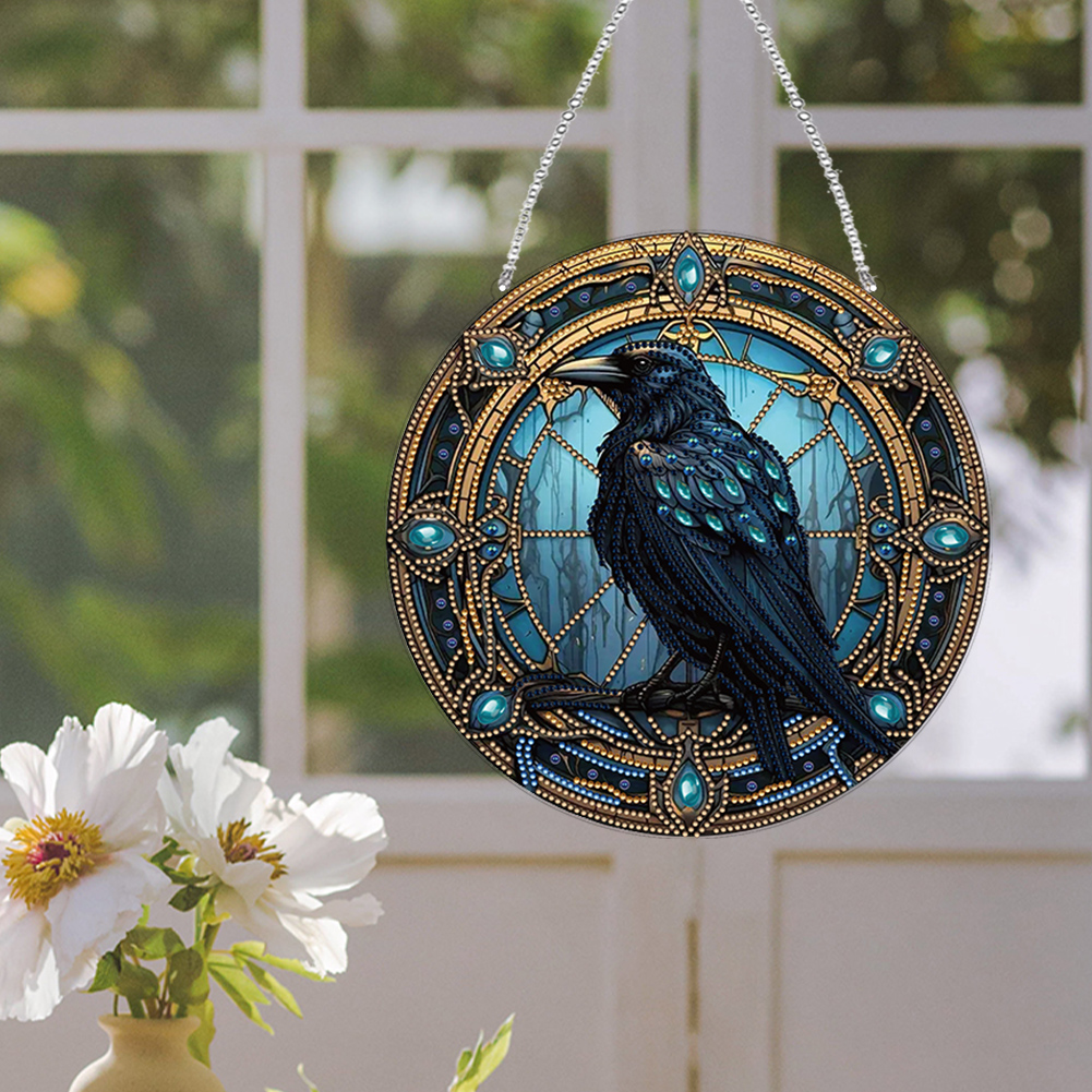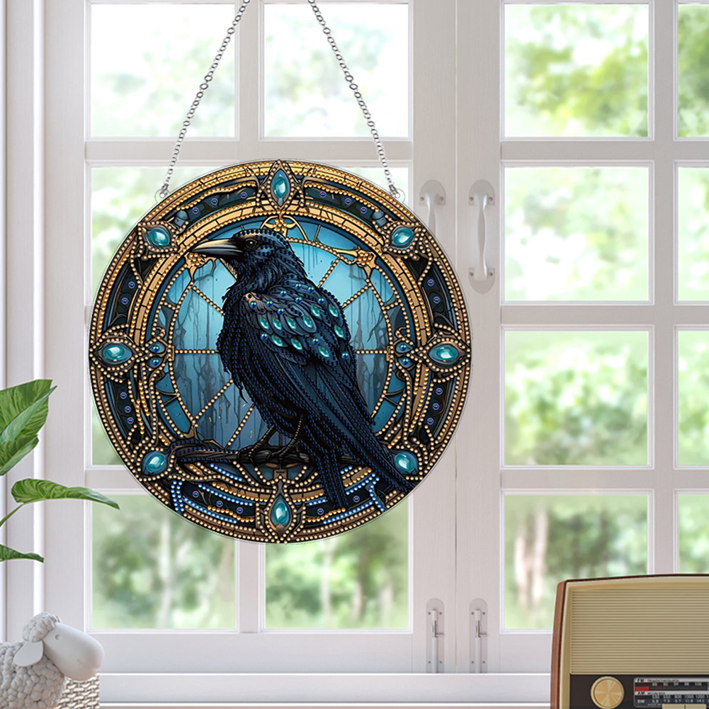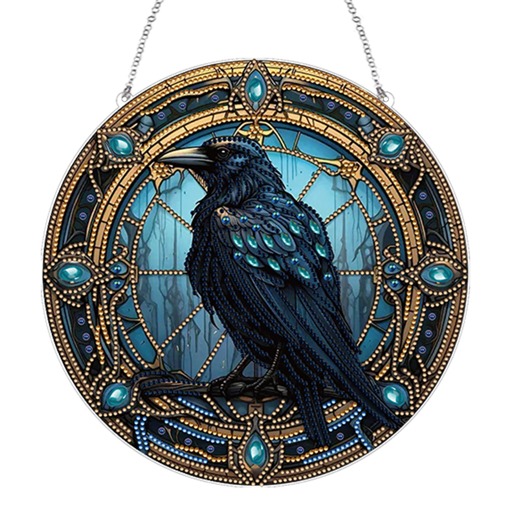 DIY Stained Glass Crow Acrylic Special Shaped Hanging Diamond Painting Art Pendant Suncatcher Home Windows Decor