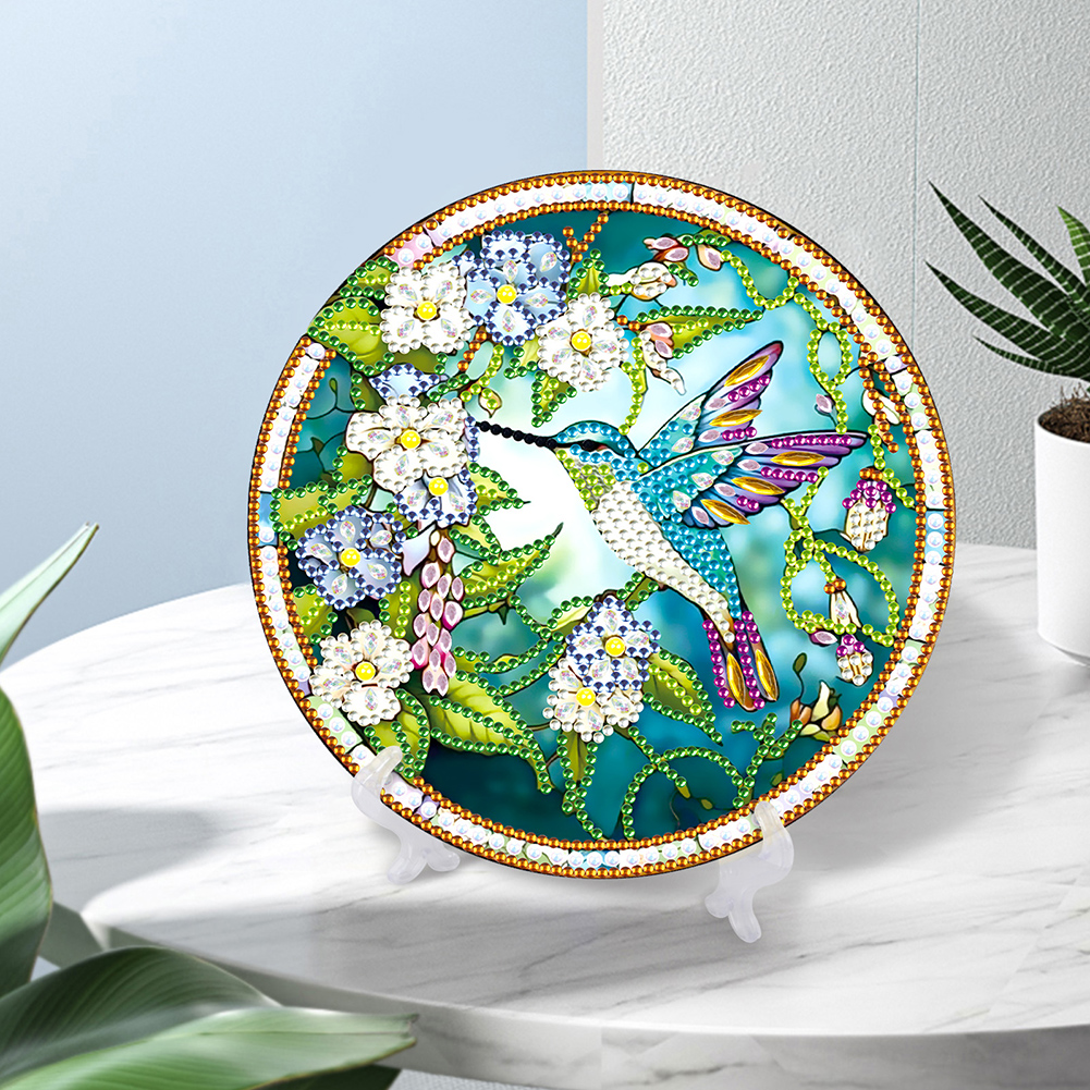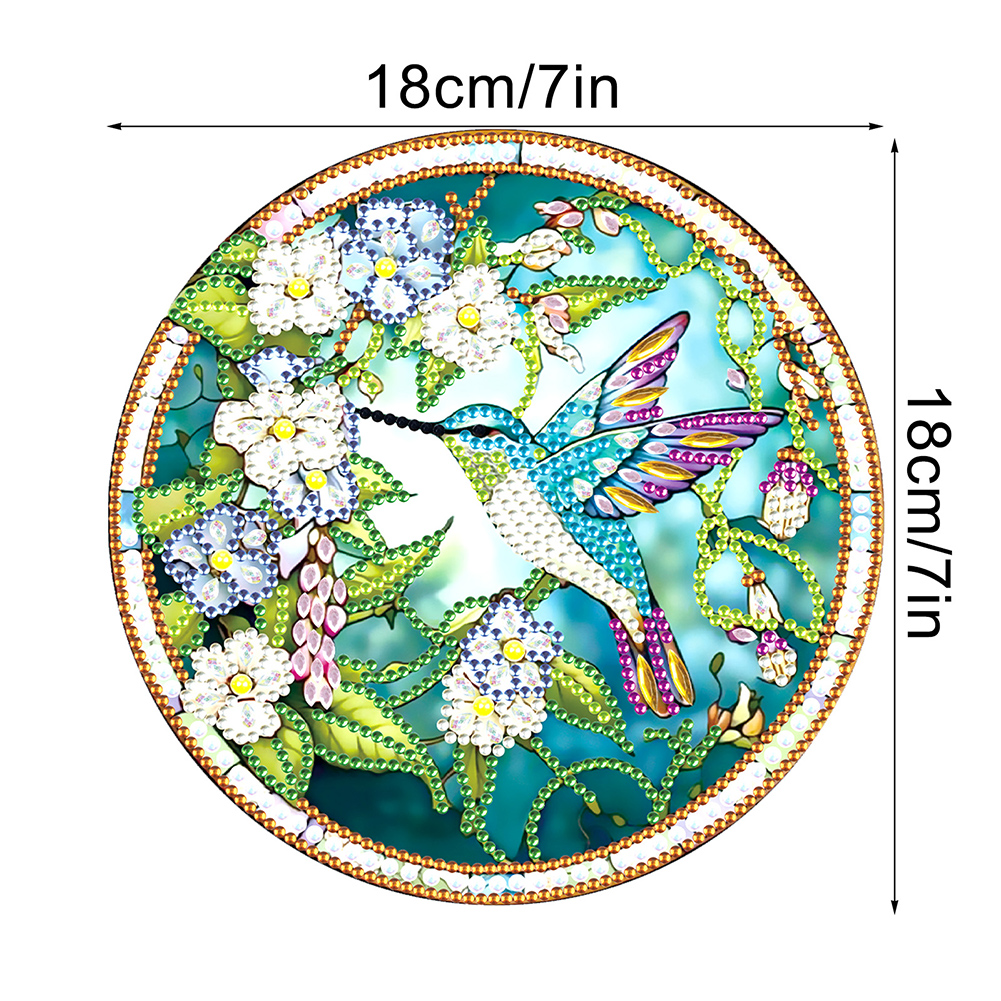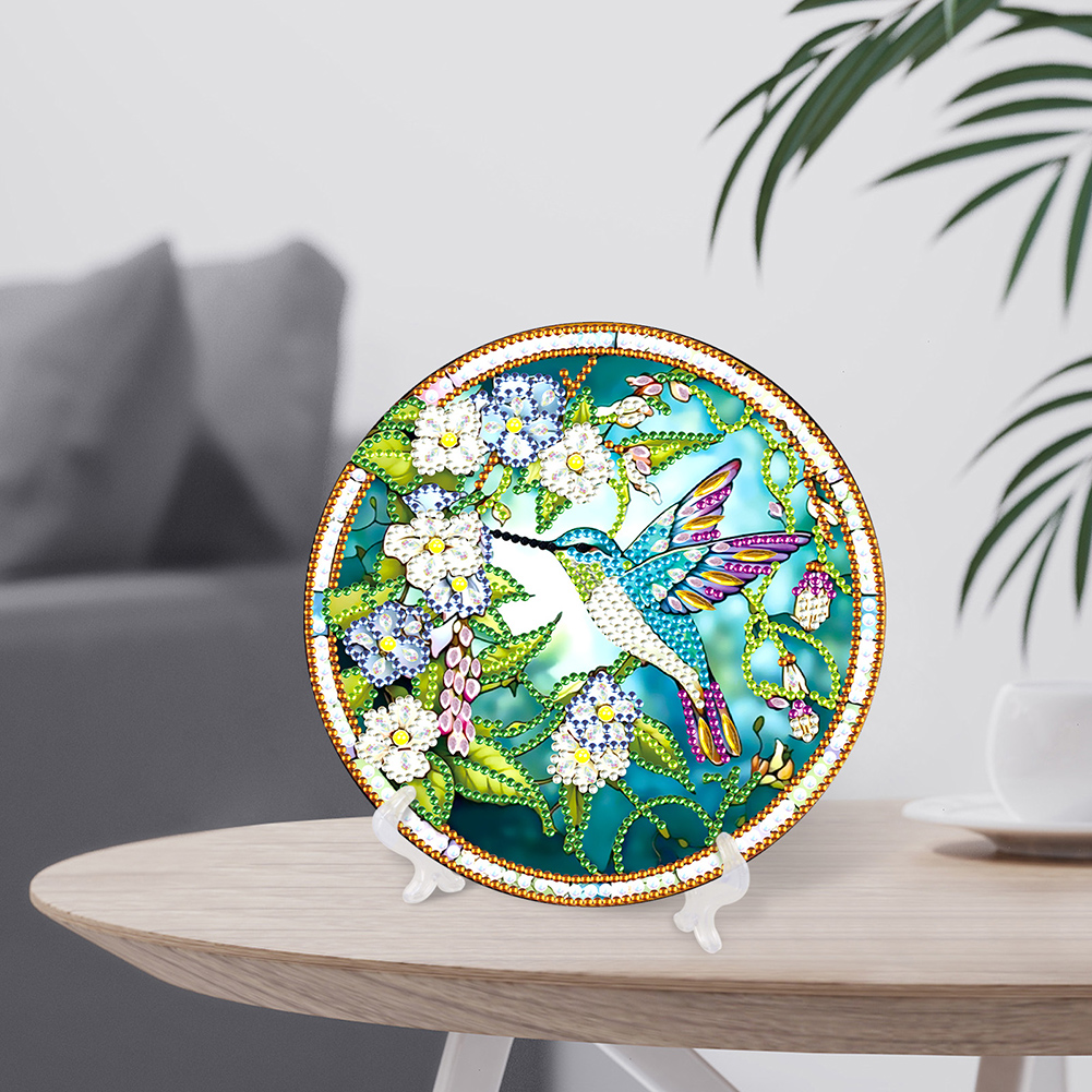 DIY Stained Glass Hummingbird Diamond Painting Wooden Single Side Crystal Painting Desktop Kit for Home Office Decor
