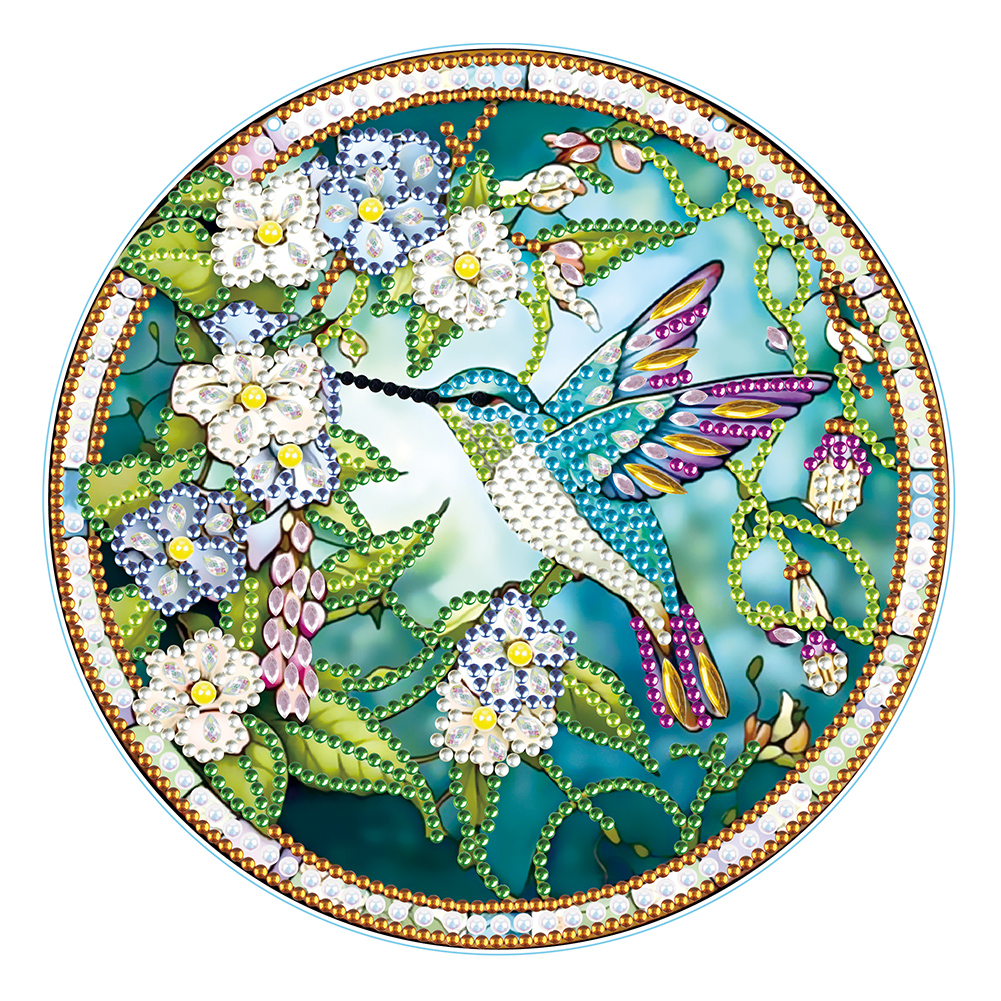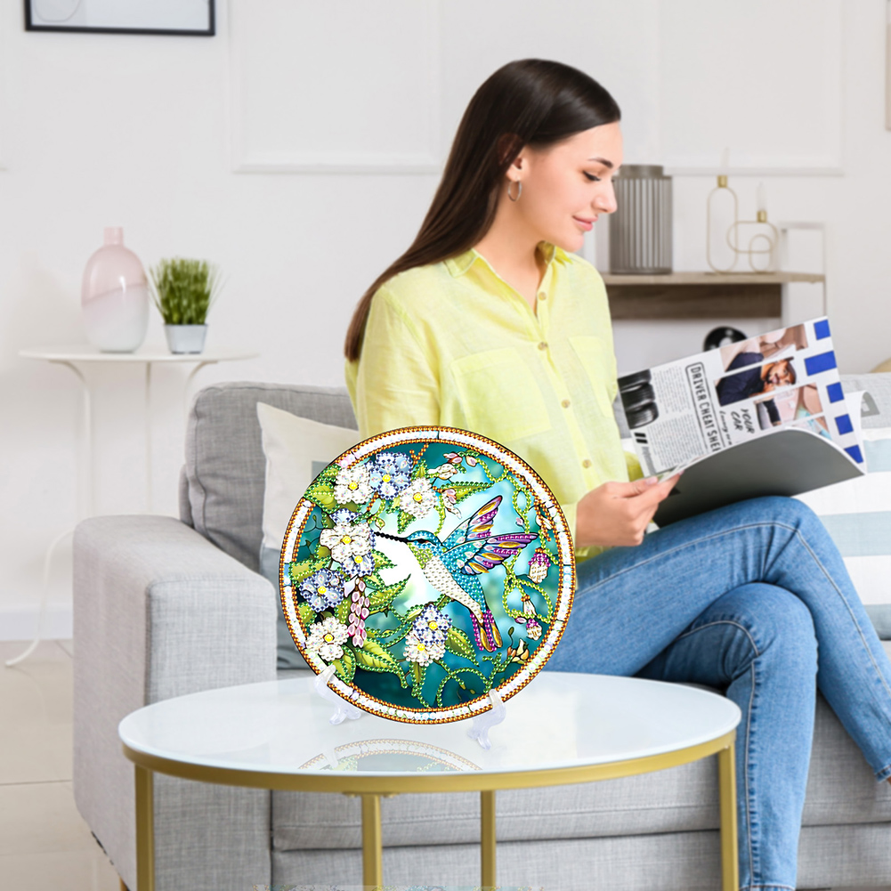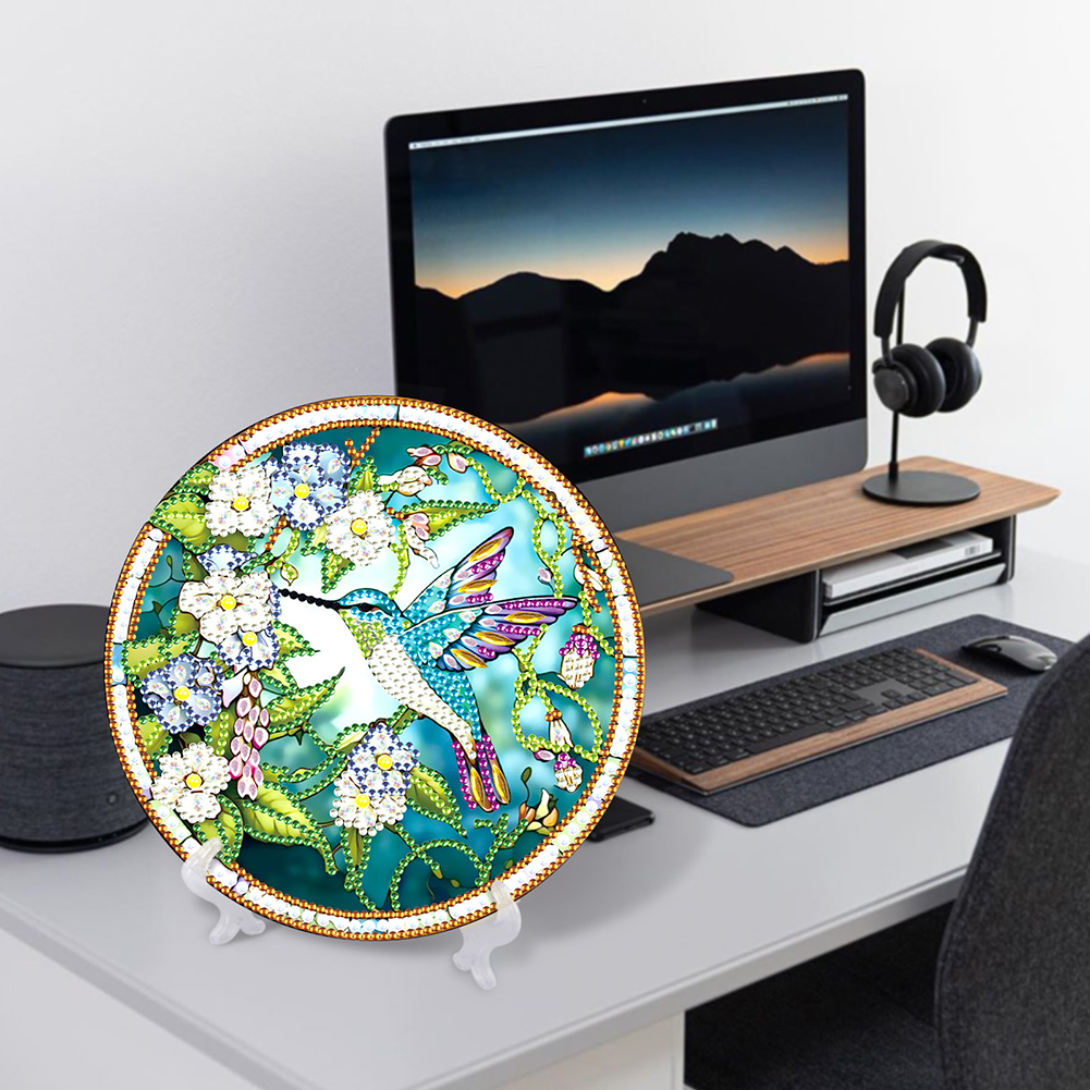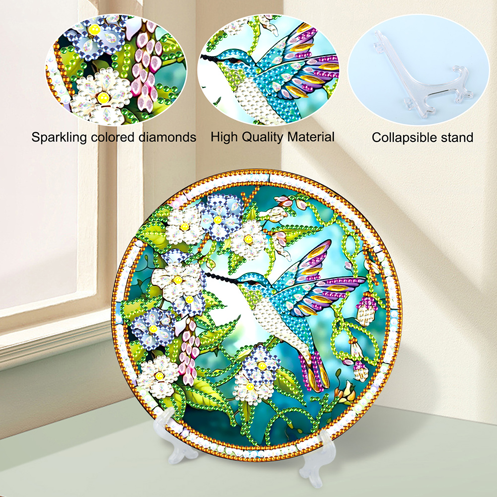 DIY Stained Glass Hummingbird Diamond Painting Wooden Single Side Crystal Painting Desktop Kit for Home Office Decor